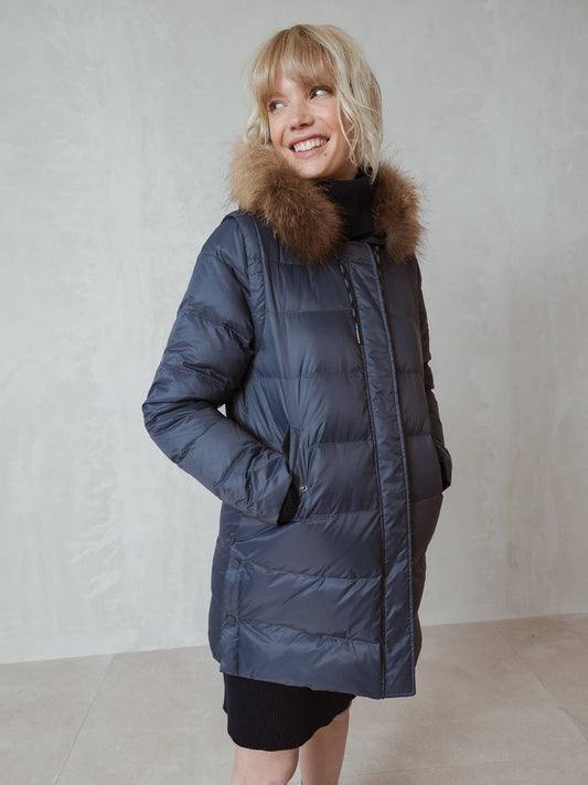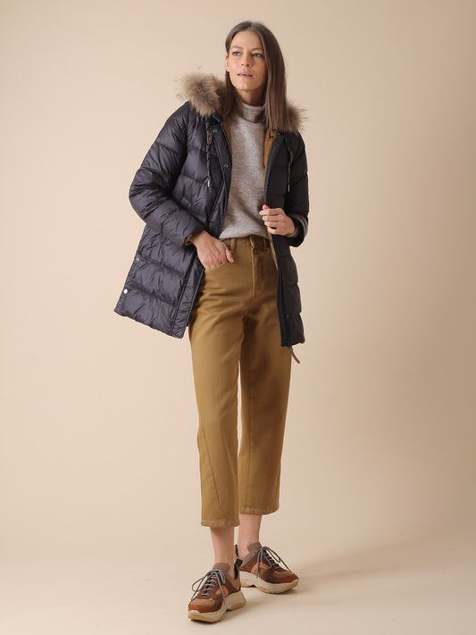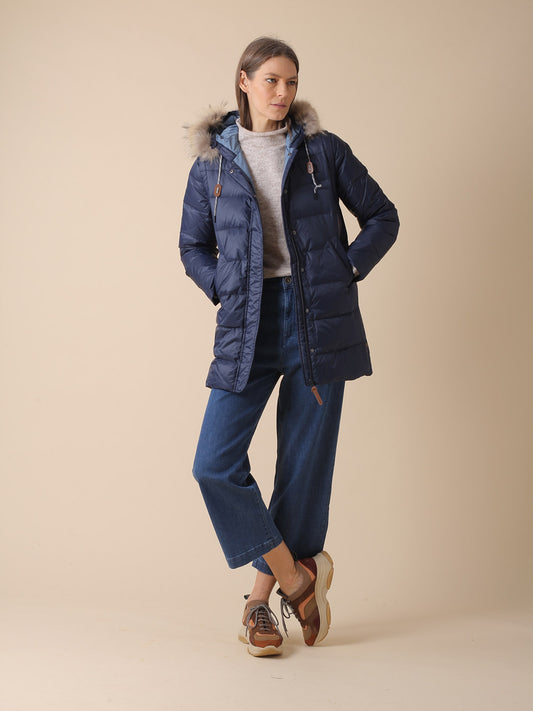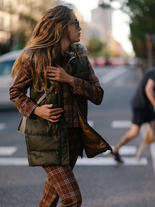 Plumífero convertible en chaleco con pelo en capucha de quita y pon