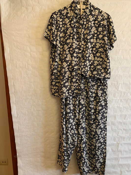 Conjunto verano blusa y pantalón negro con margaritas