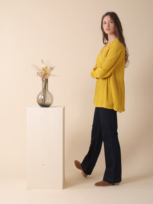 BLUSA LARGA EN VISCOSA CON PUNTILLA