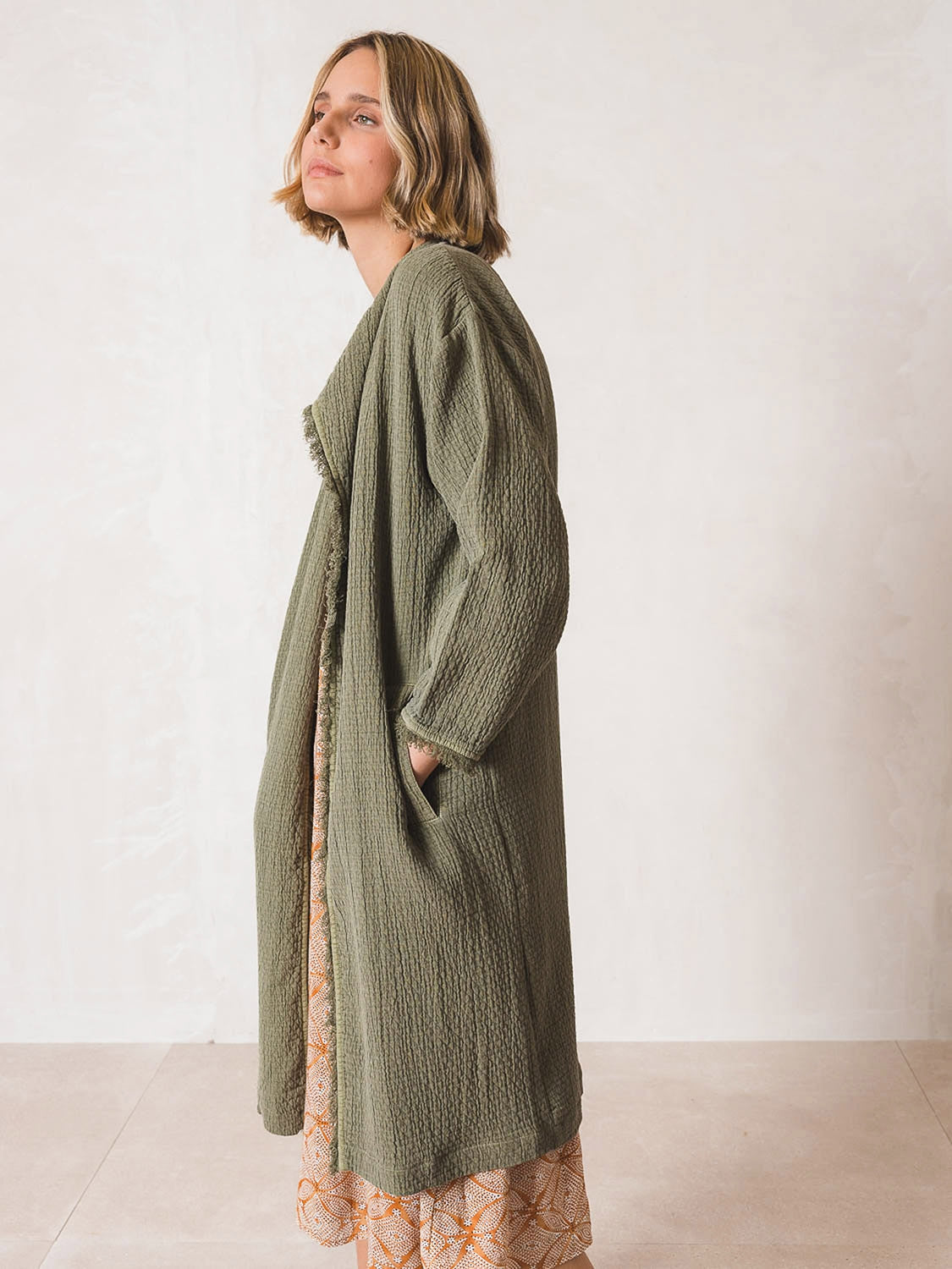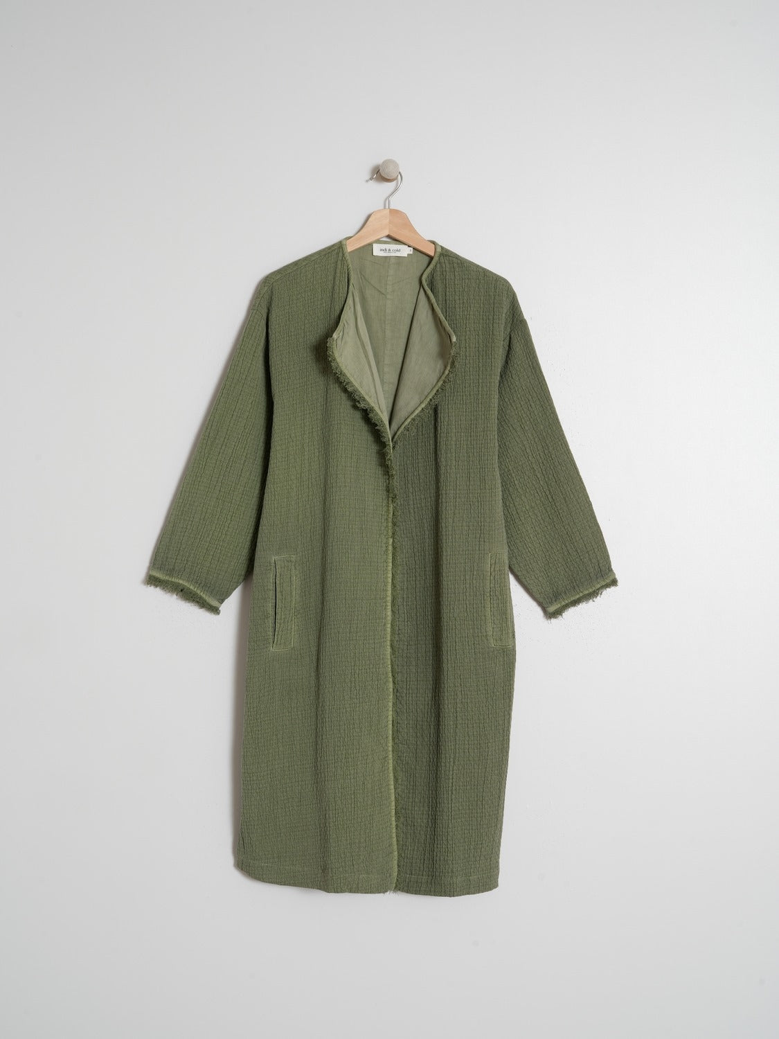 3/4 COAT IN DOUBLE COTTON GAUZE WITH USED EFFECT