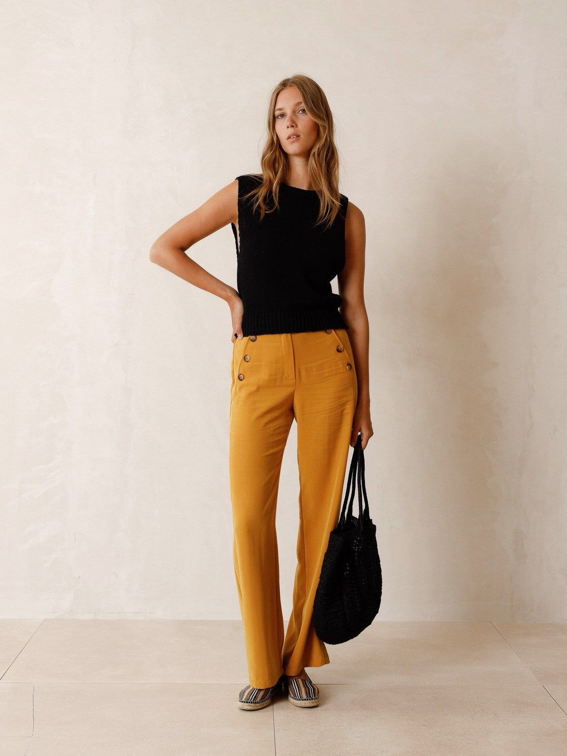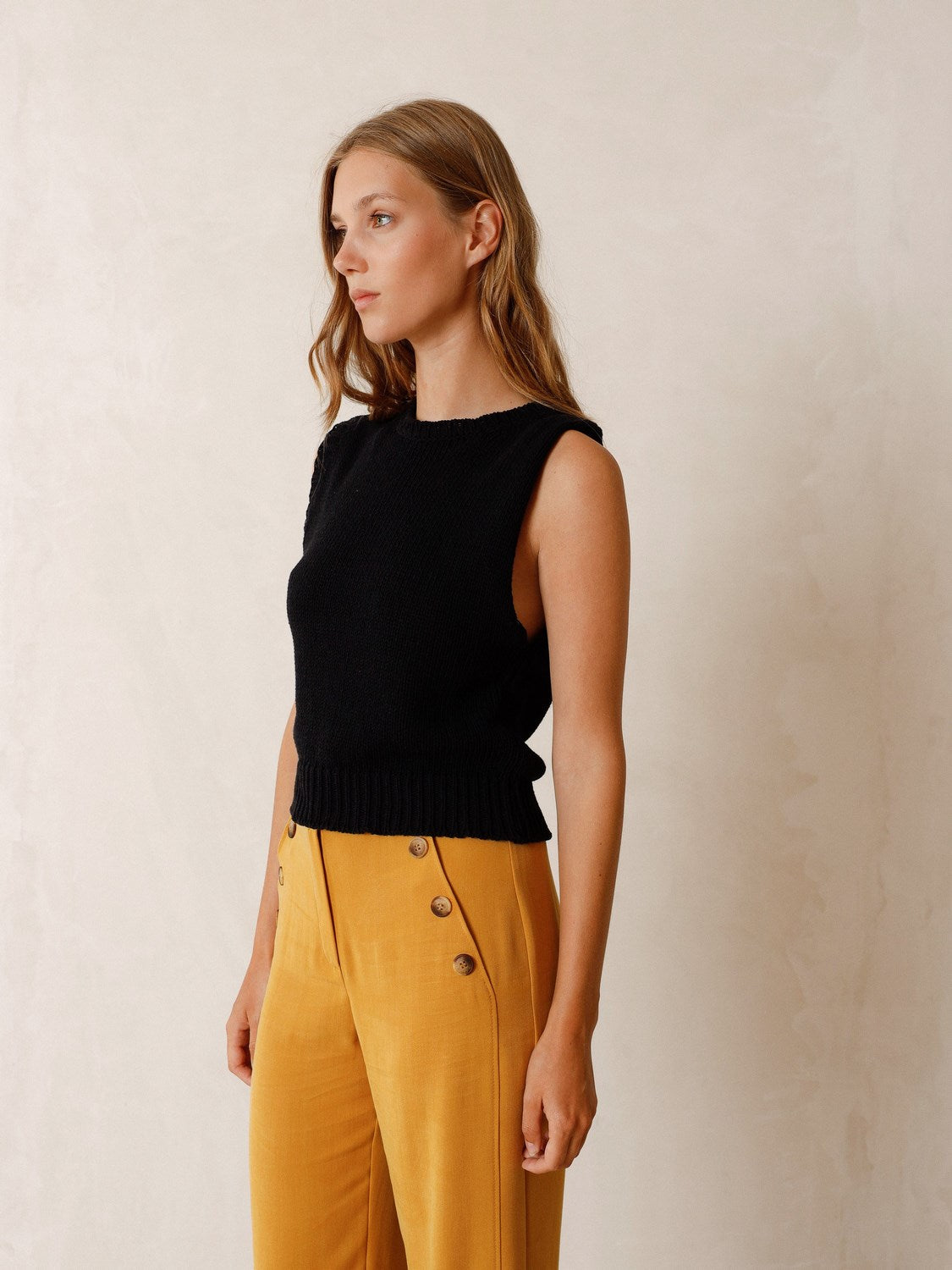 - High-rise, fitted waist