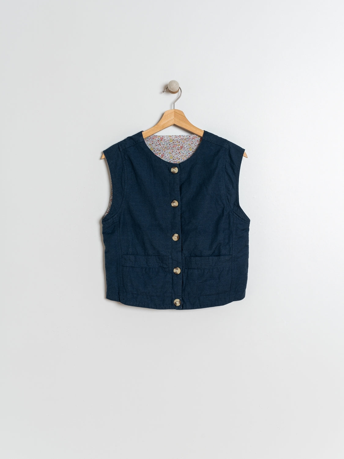 GILET RÉVERSIBLE EN COTON EFFET RUSTIQUE