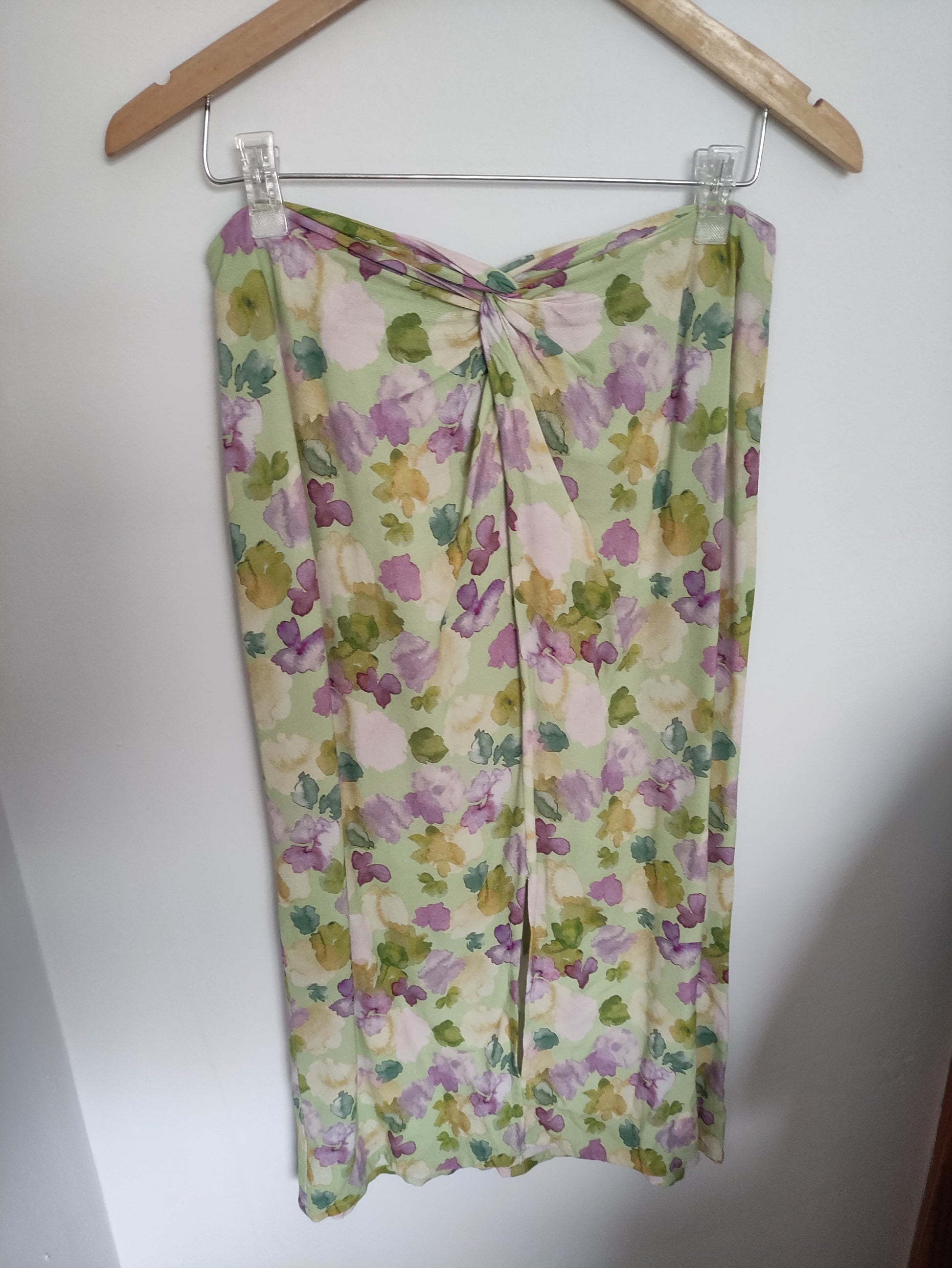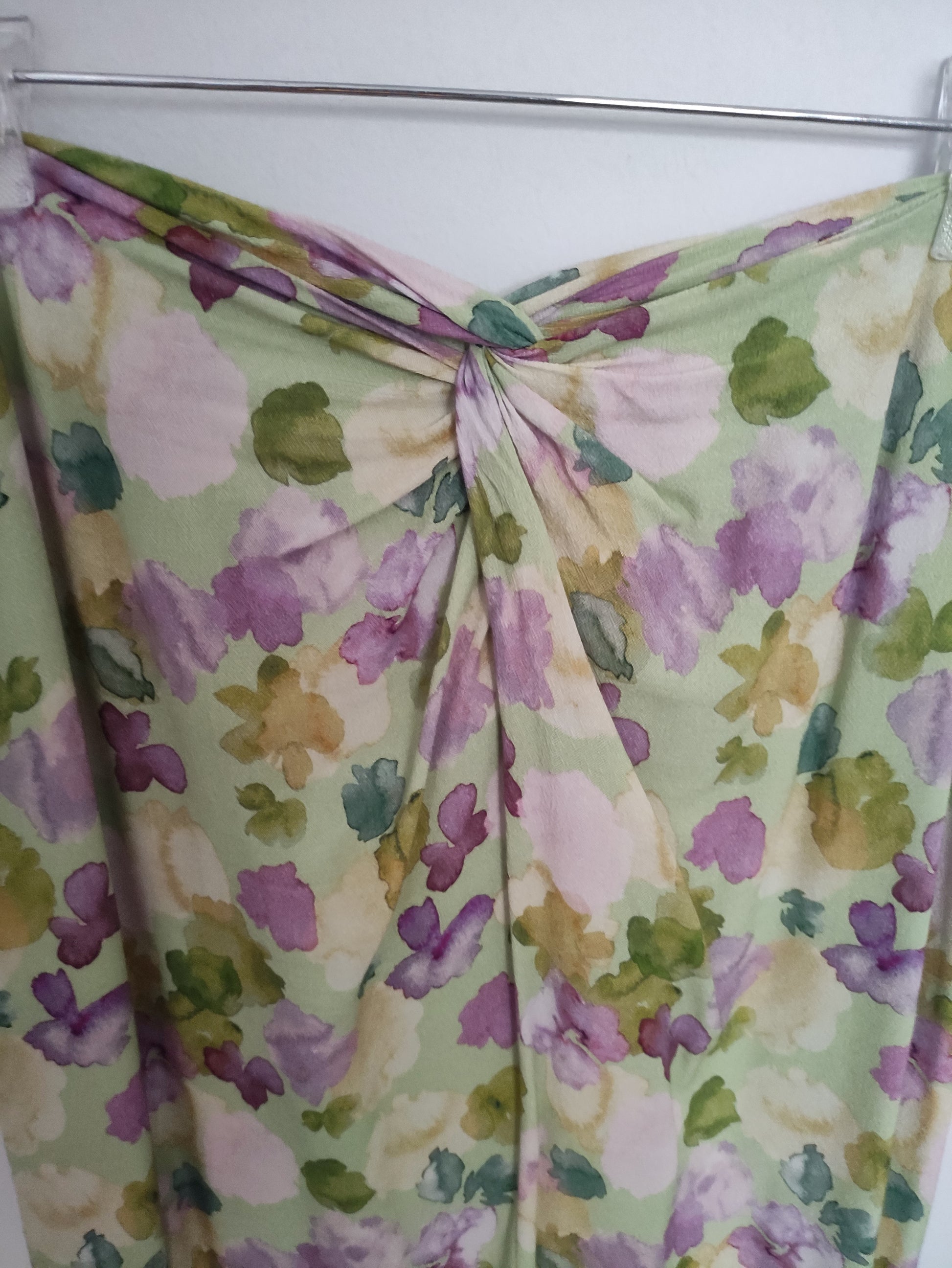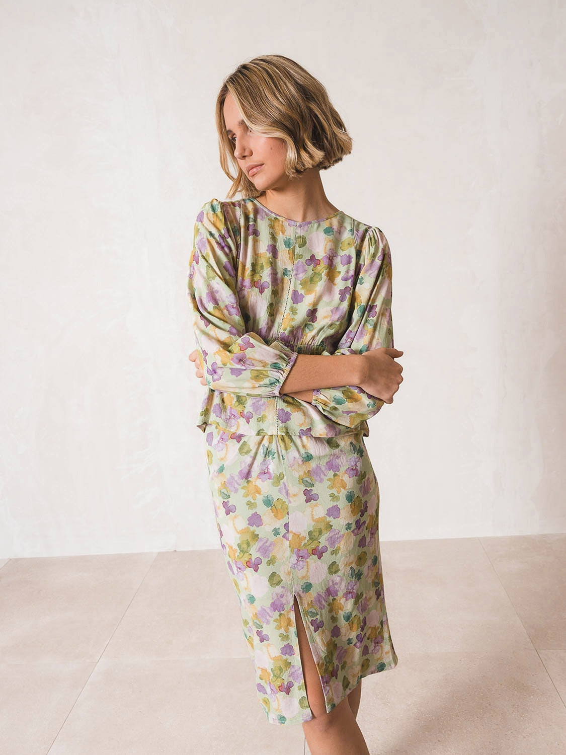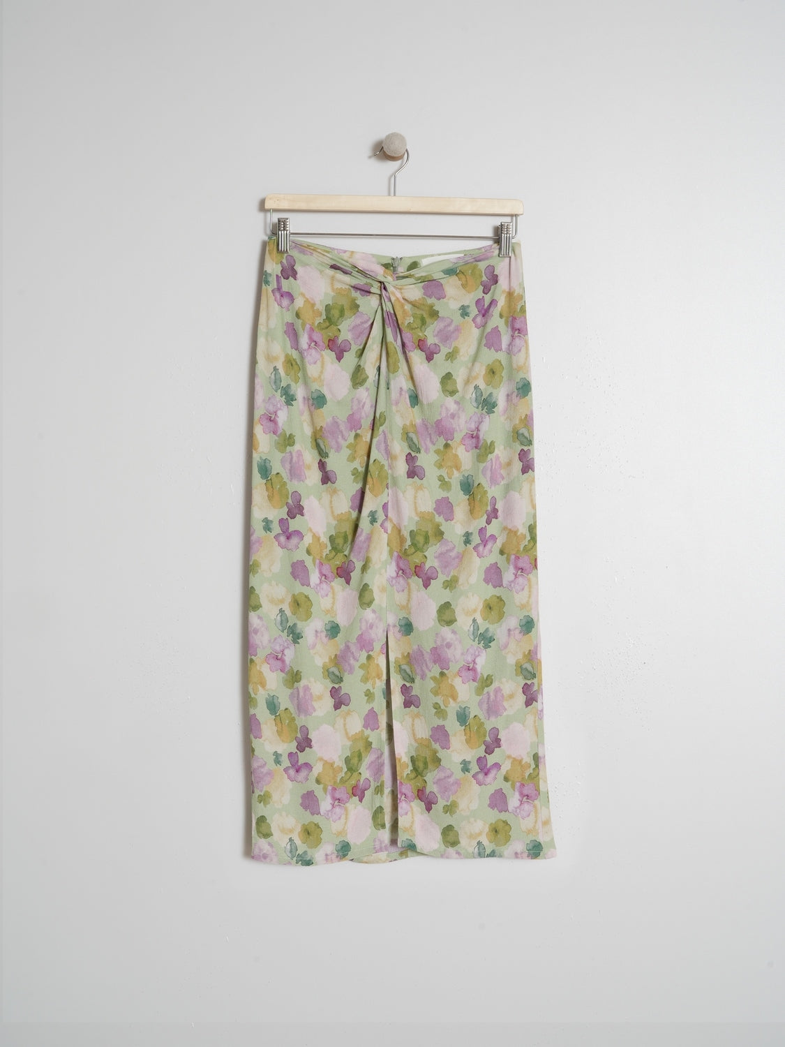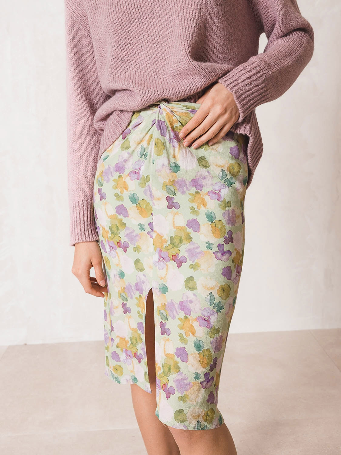 JUPE CRAYON AVEC DÉTAIL NŒUD IMPRIMÉ AQUARELLE EN VISCOSE ECOVERO