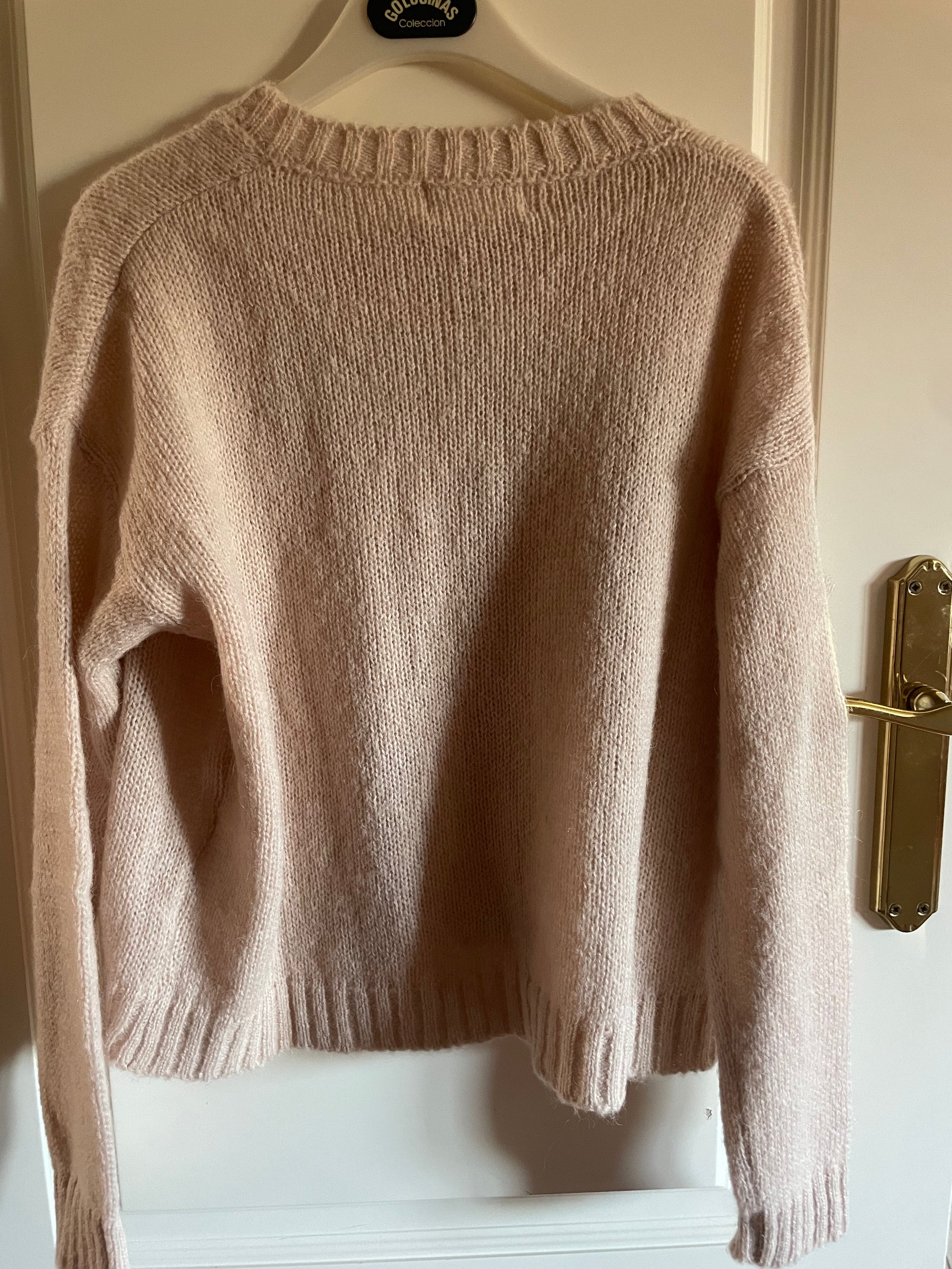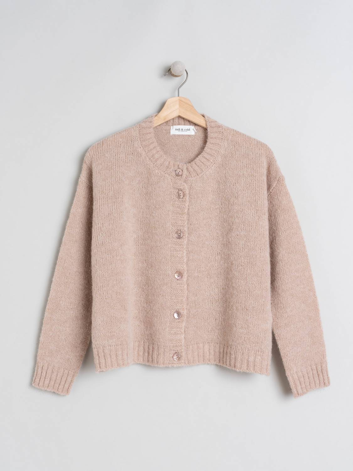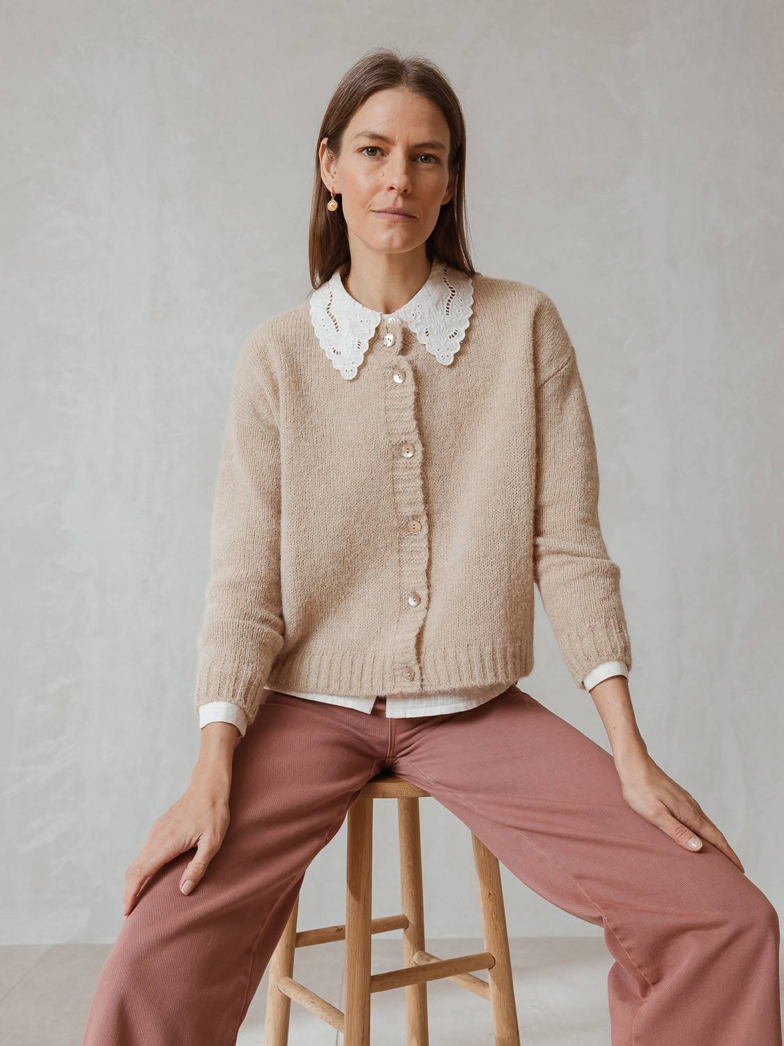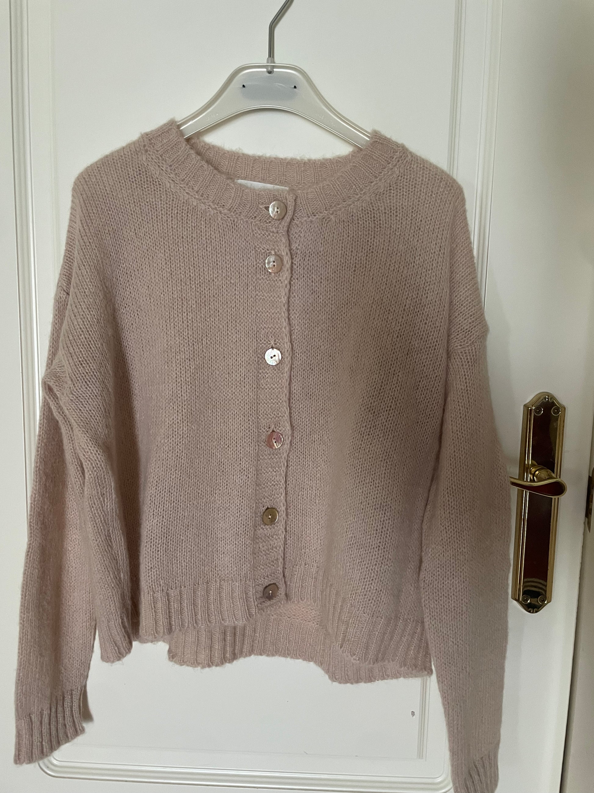 Cette veste a une coupe ample, bien qu’elle ne soit pas longue. Elle est très facile à porter grâce à sa couleur nude presque écru.