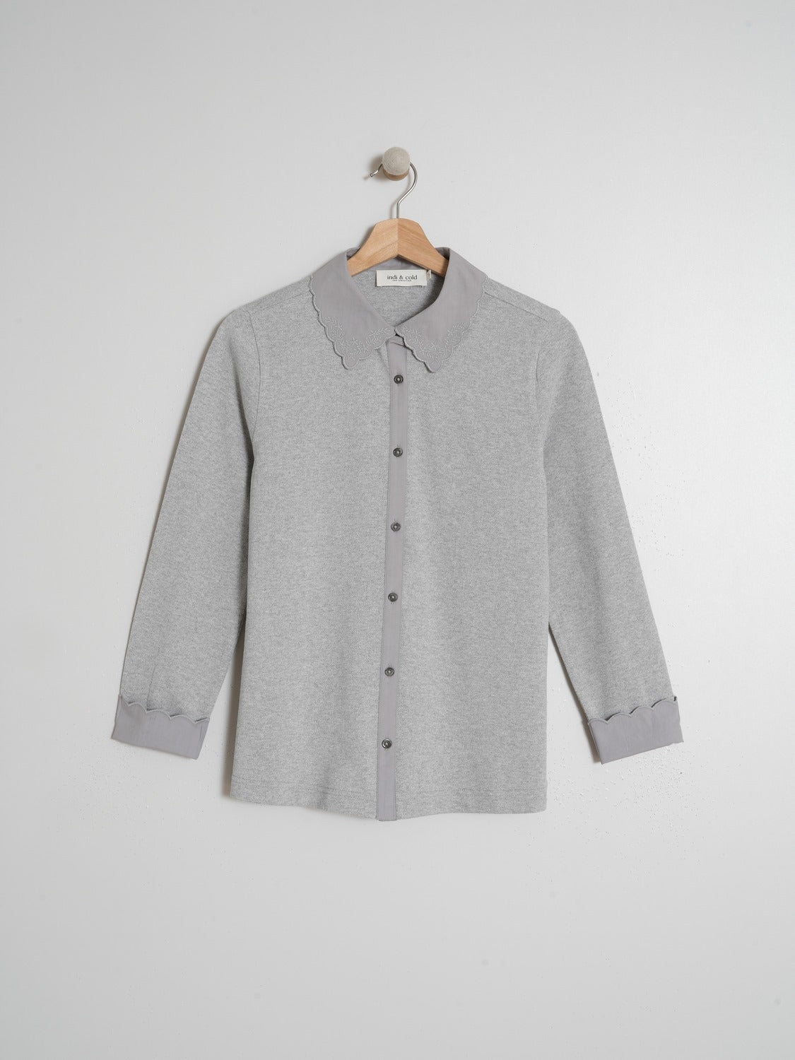 - Cuello y puños en piqué de algodón con detalles bordados al tono