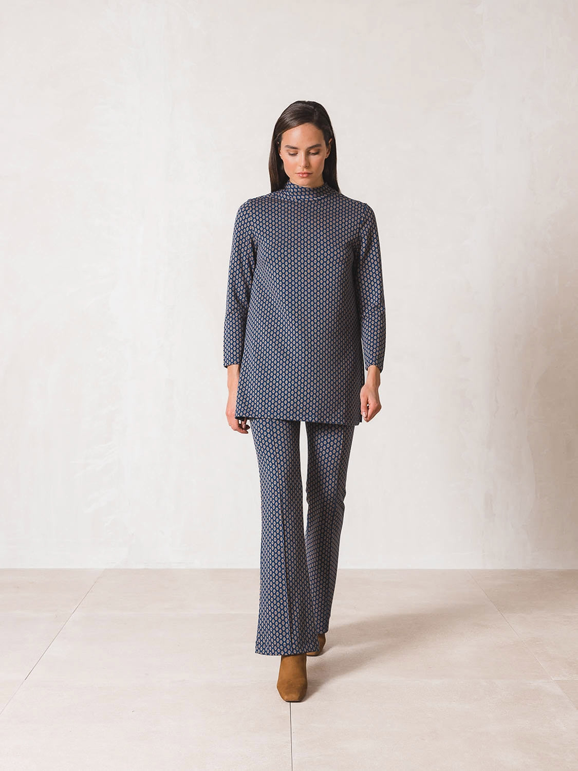 BLUSA JACQUARD CON CUELLO PERKINS DE PUNTO