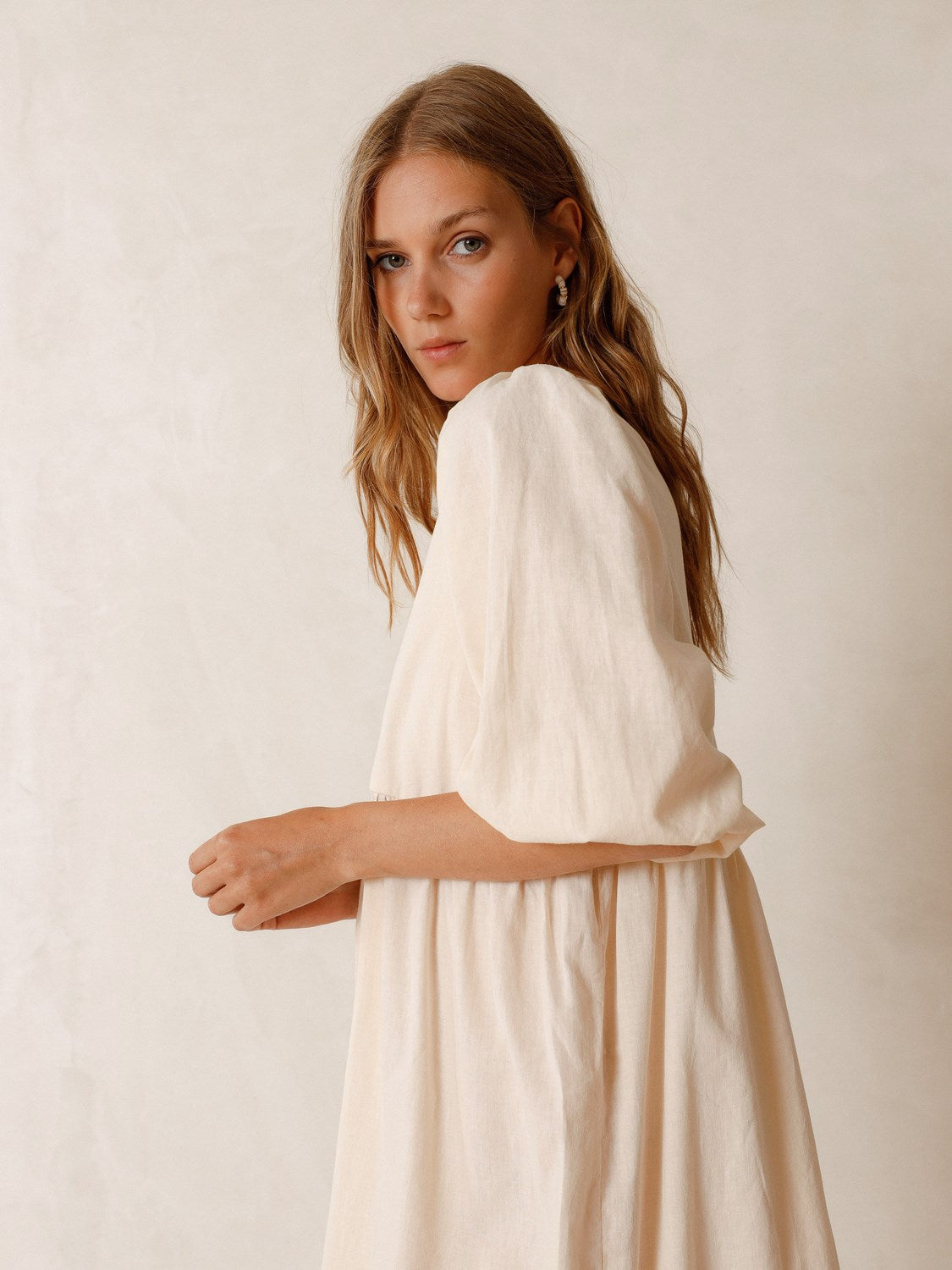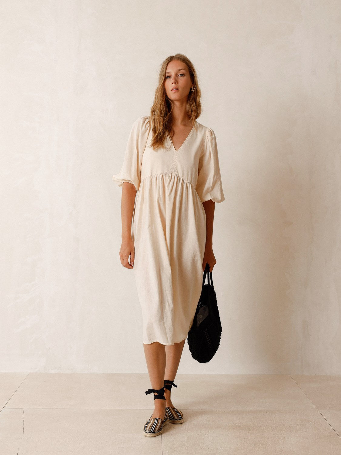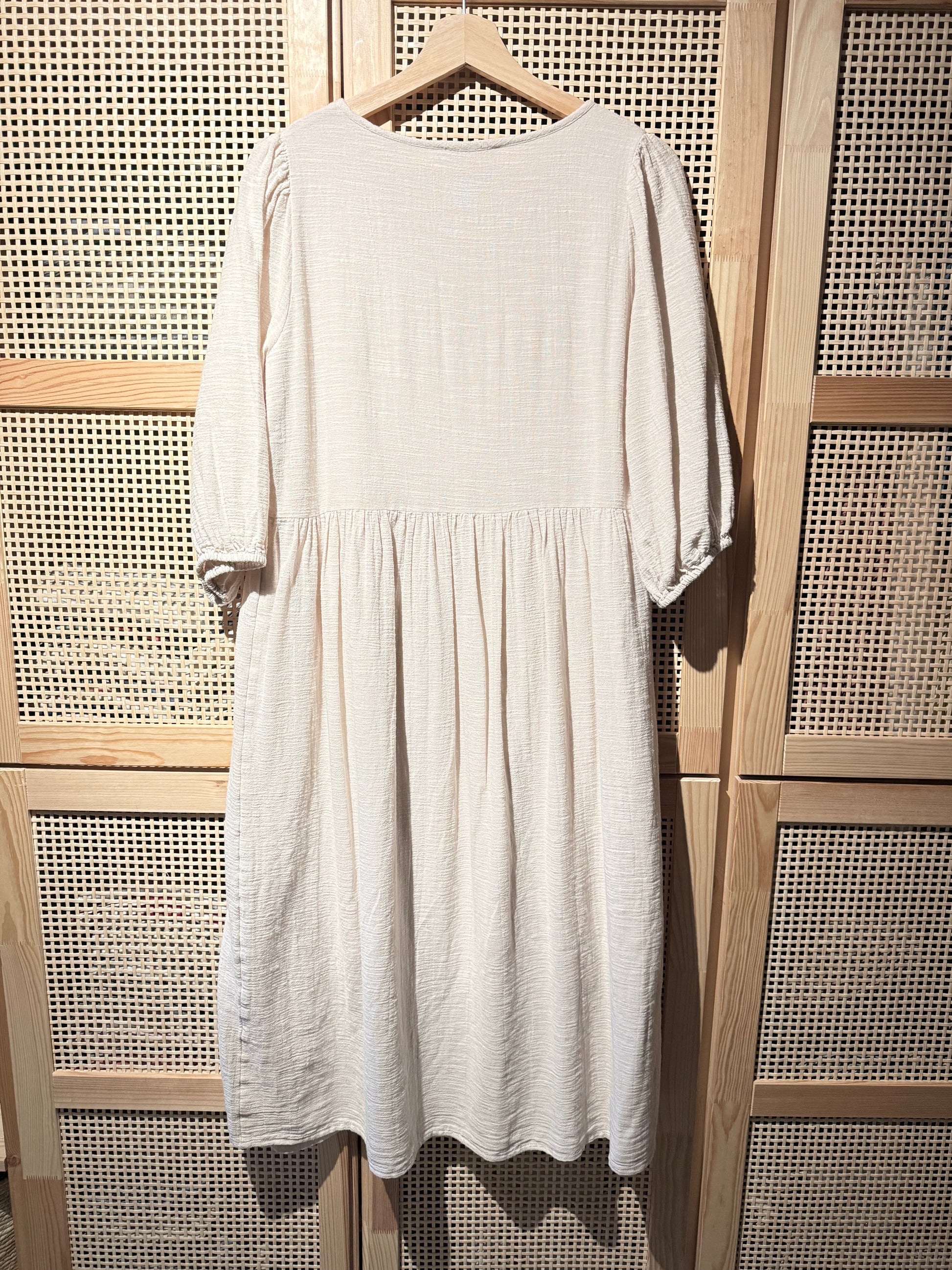 VESTIDO FLUIDO BECA EN ALGODÓN LINO CON TINTE EN PRENDA