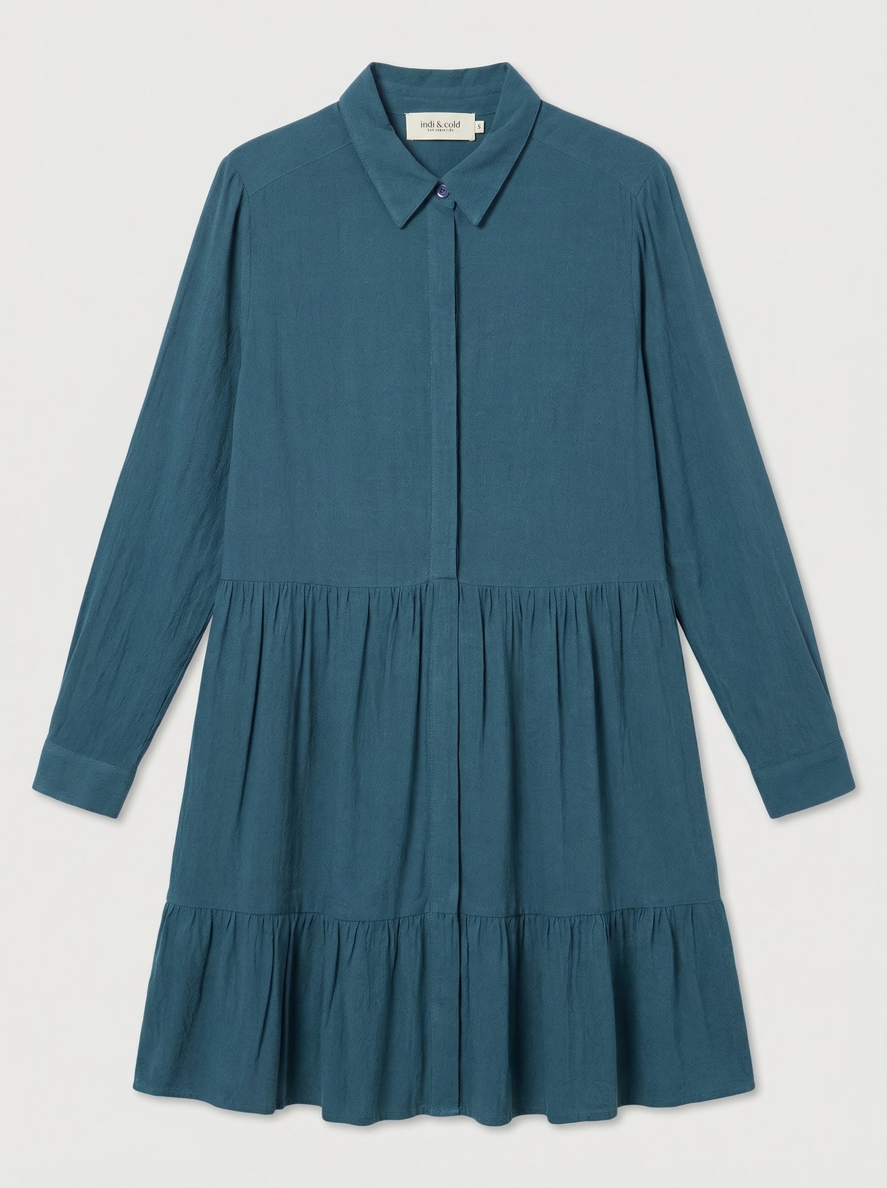 - Vestido corto con cuello camisero.