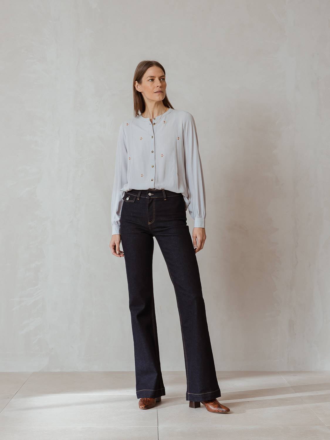El pantalón NOAH es nuestra propuesta para un look retro y atemporal. Su pierna larga tall friendly lo hace perfecto para estilizar la silueta de las más altas. Tiene un fit ajustado y bajo acampanado, perfecto para llevarlo con una campera. Un básico sostenible de algodón con lavado Ozono Denim.