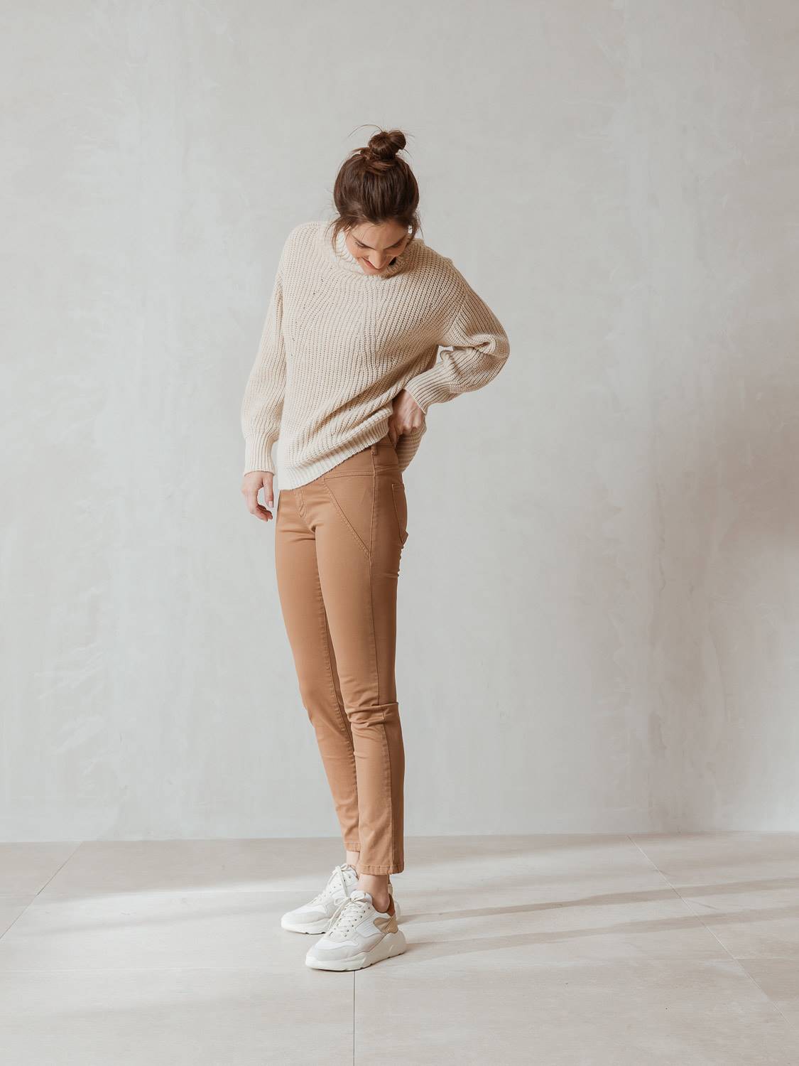 - Pantalon slim tiro medio con detalle de costuras en parte frontal.