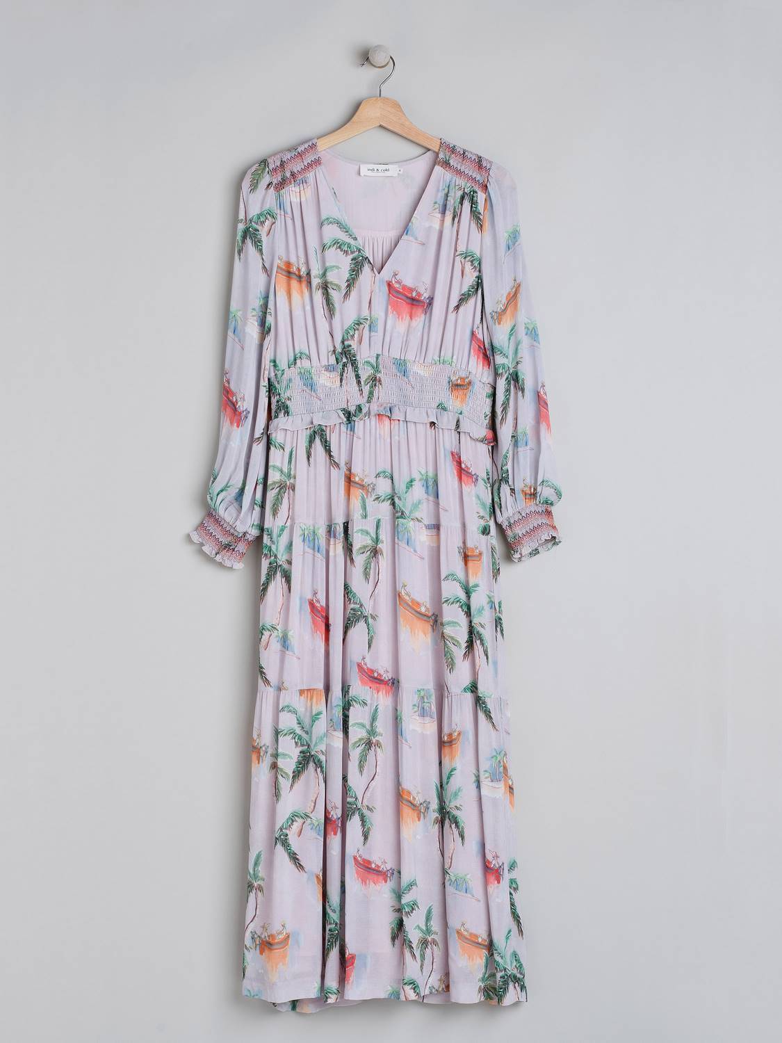 VESTIDO MAXI DE PALMERAS EN VISCOSA ECOVERO.