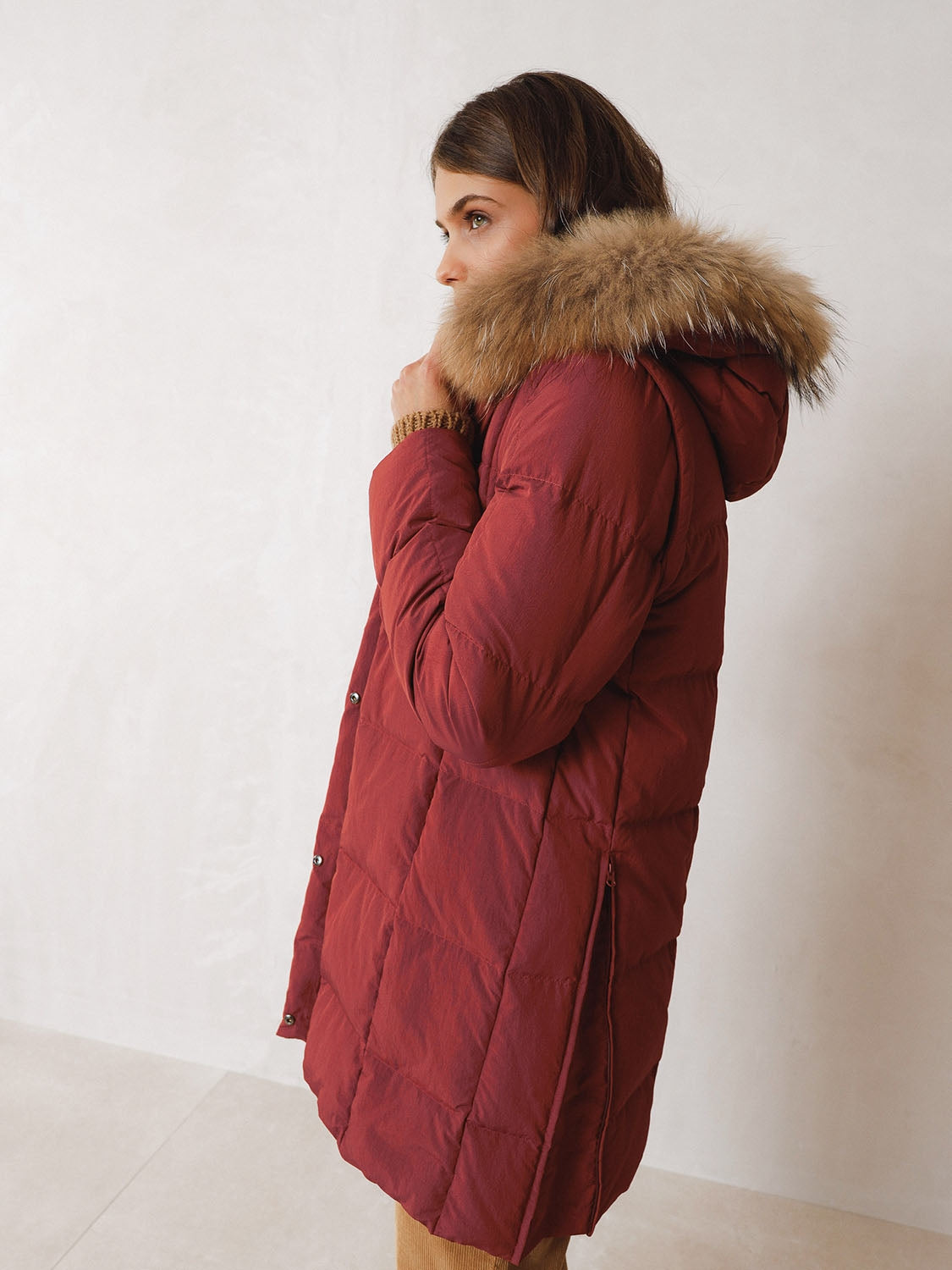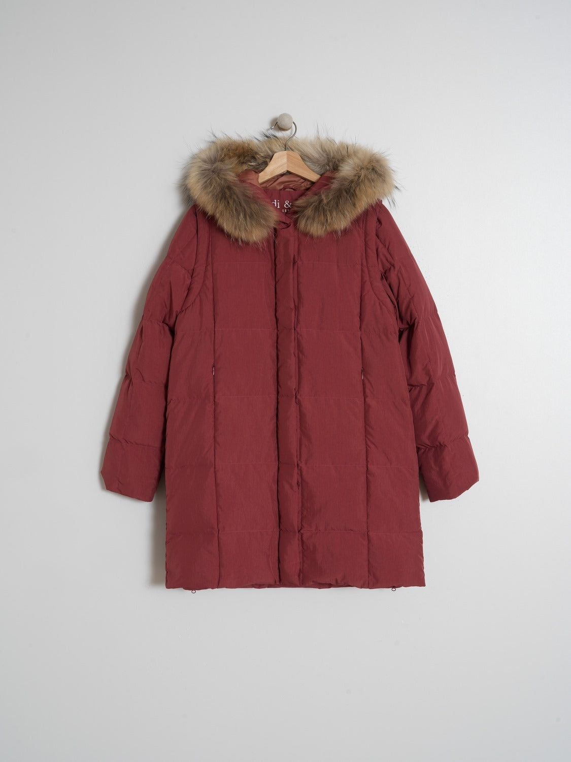- Cuello redondo con capucha y racoon extraible