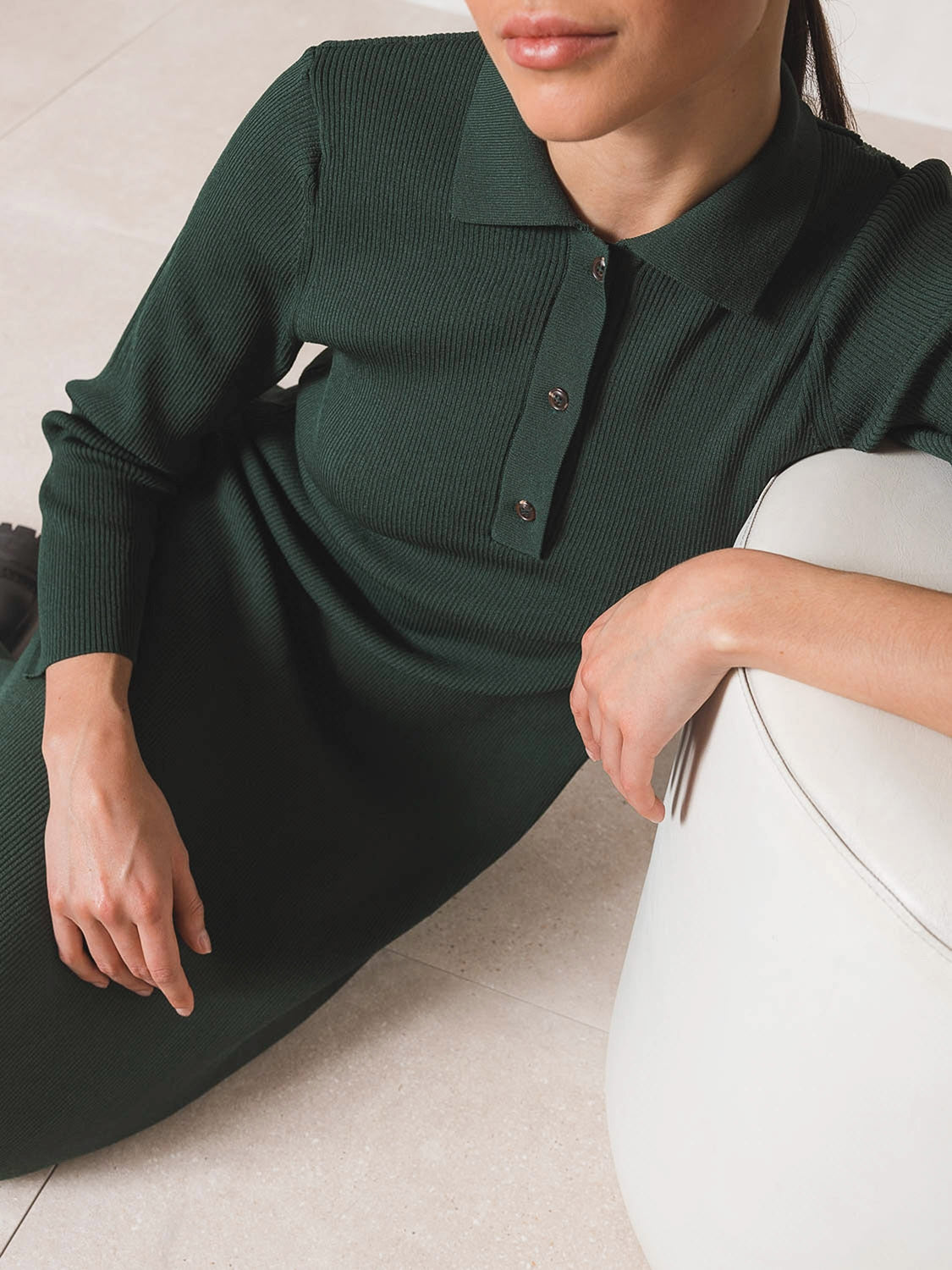 VESTIDO CAMISERO MAXI EN PUNTO CANALÉ