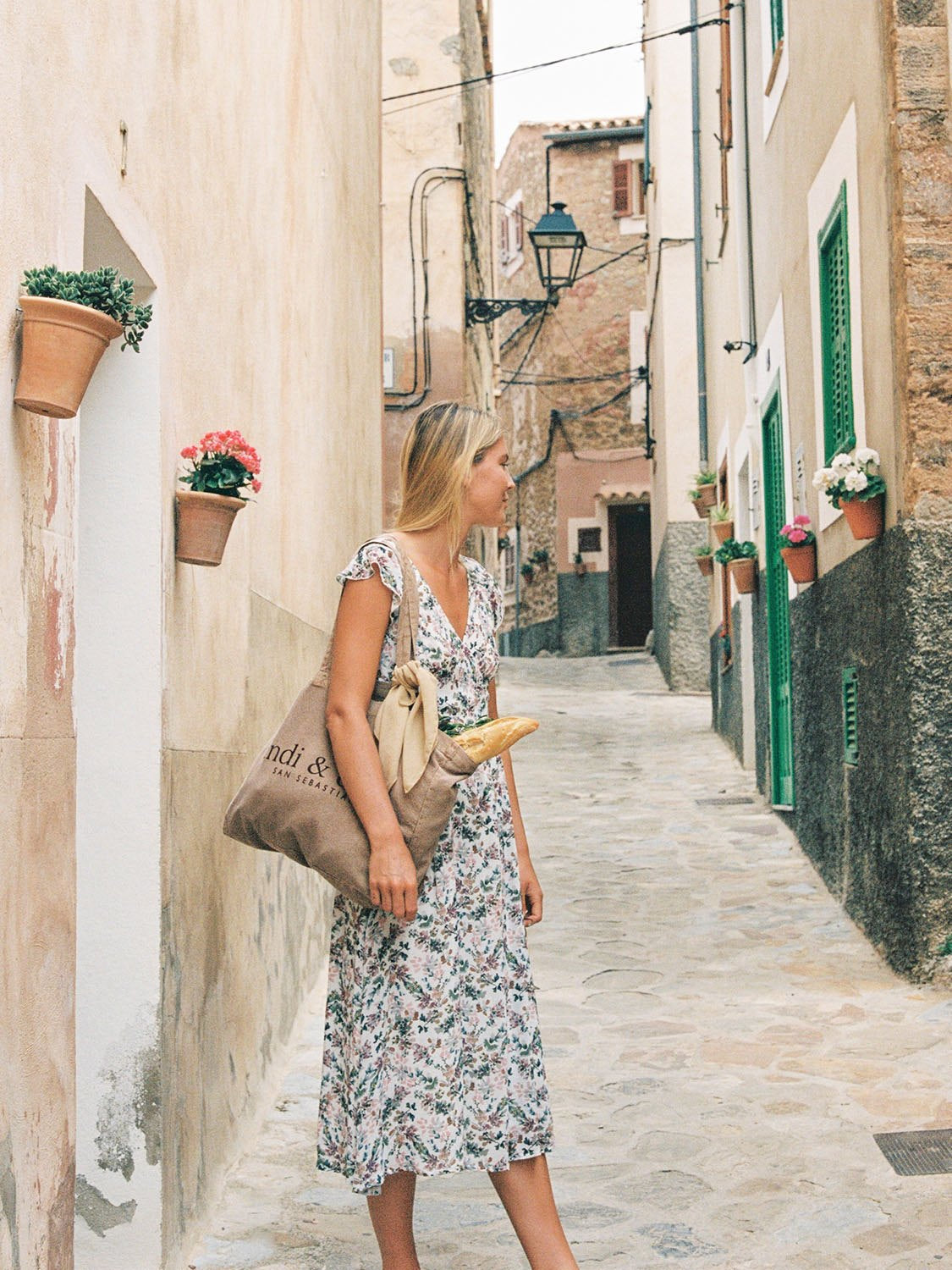 VESTIDO MIDI CON ESTAMPADO DIGITAL DE FLORES EN ACUARELA