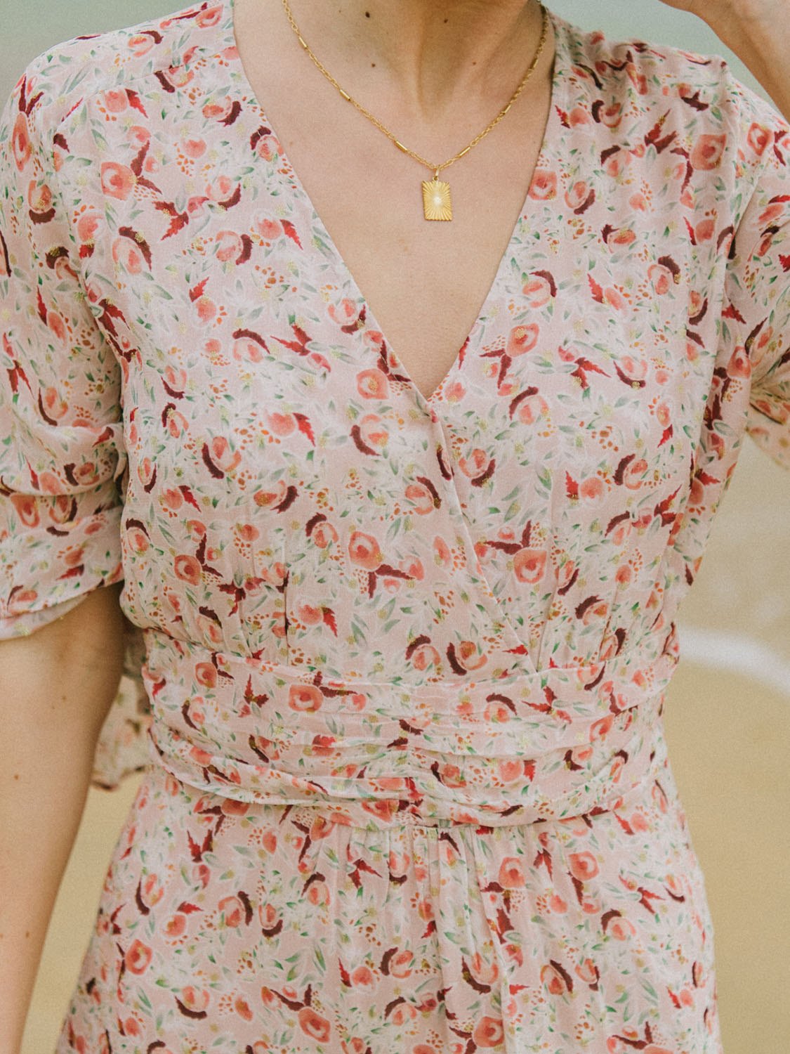 - Escote cruzado con cierre invisible.