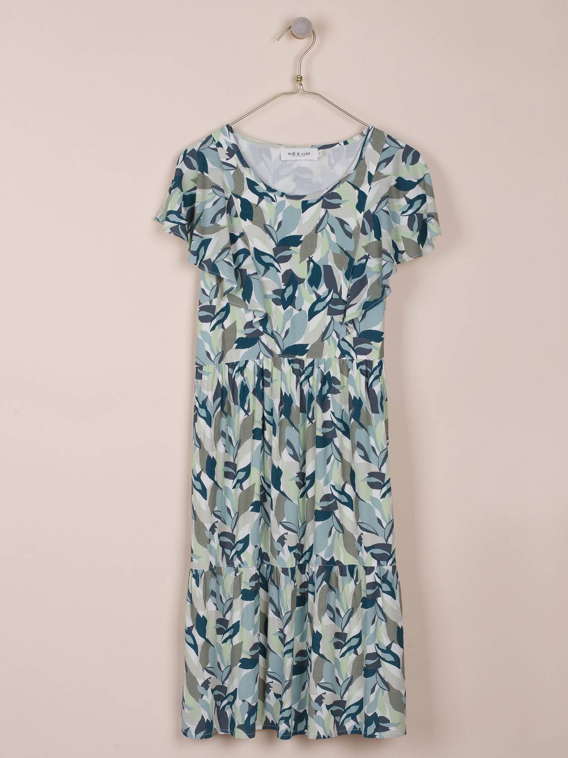 VESTIDO CORTO ESTAMPADO HOJAS EN TEJIDO DE VISCOSA ECOVERO
