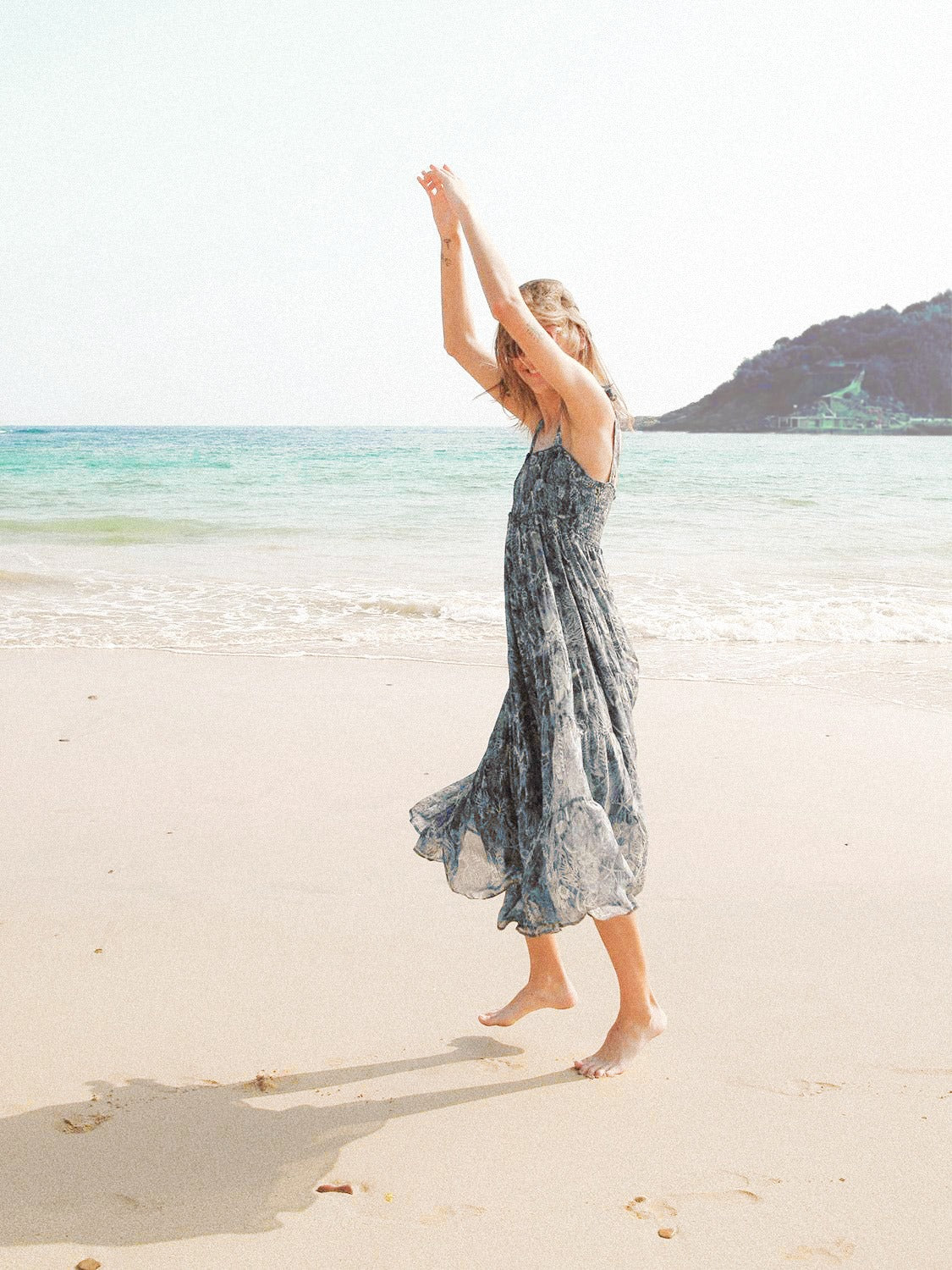VESTIDO LARGO EN MOTIVOS MARINOS SOBRE GEORGETTE DE VISCOSA