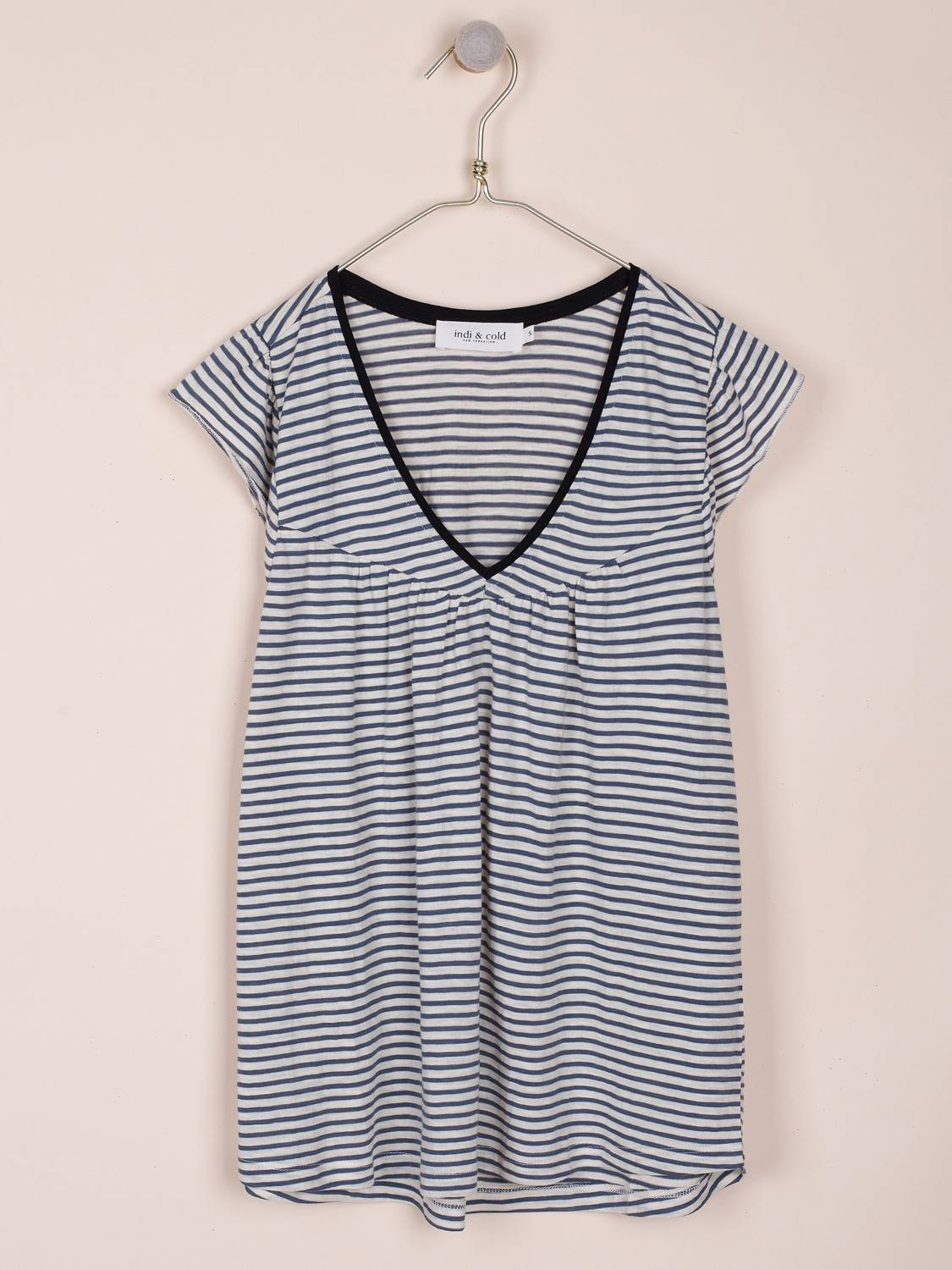 CAMISETA MIL RAYAS CON ESCOTE PICO EN ALGODÓN SOSTENIBLE