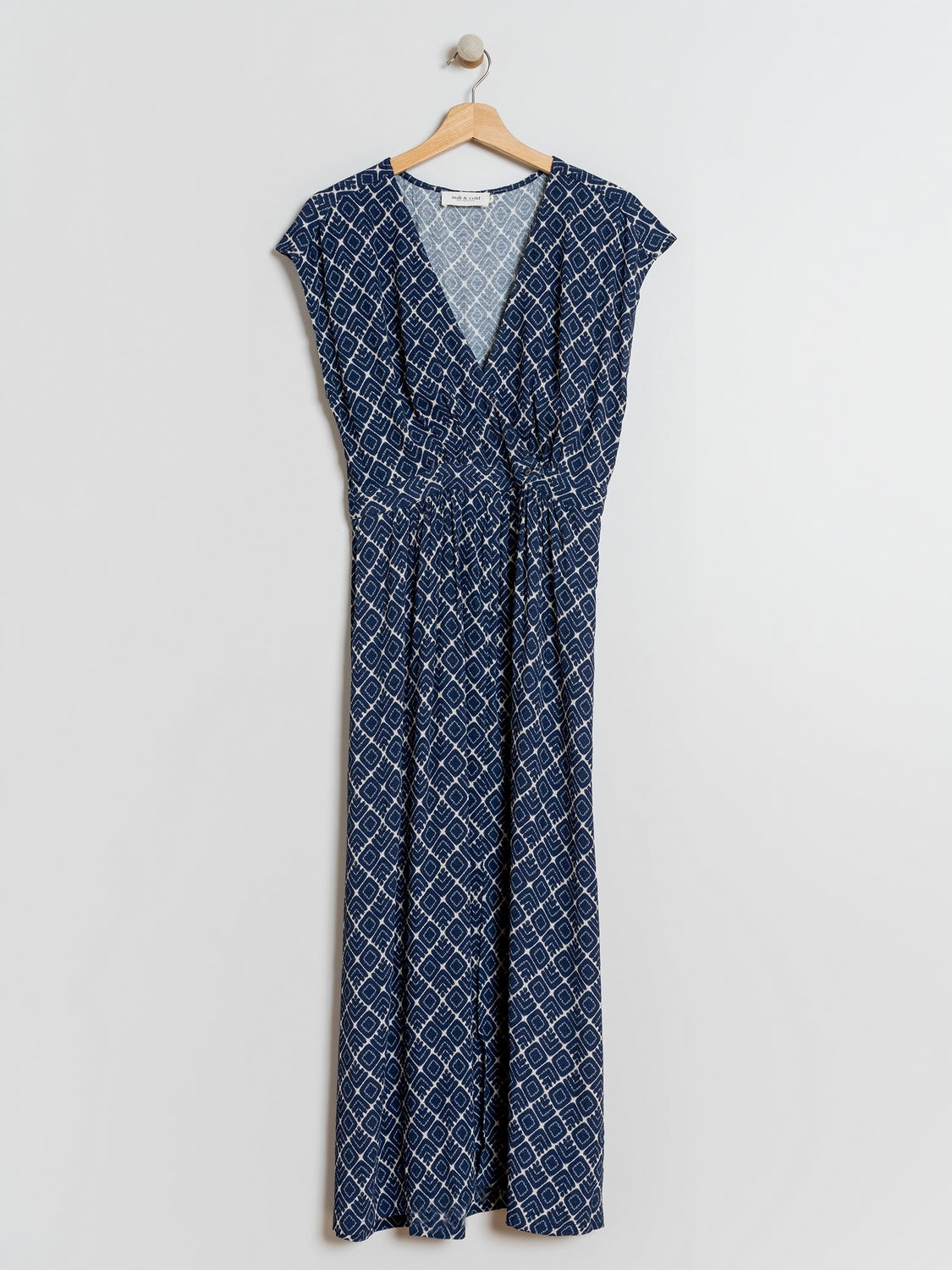 - Eli es un vestido midi cruzado ajustado en la cintura