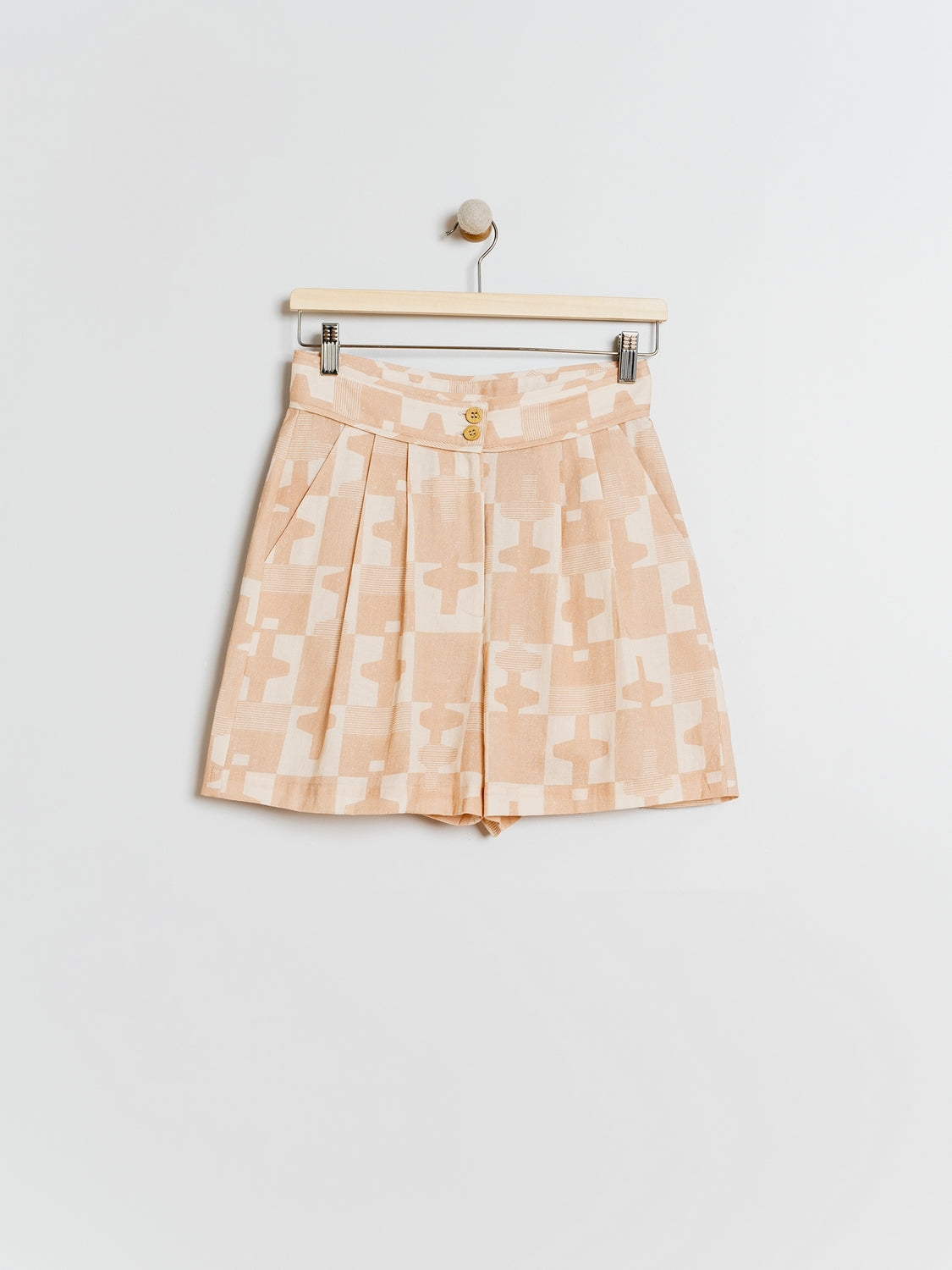 SHORT ETNIC PRINT EN LINO Y ALGODÓN CON TEXTURA