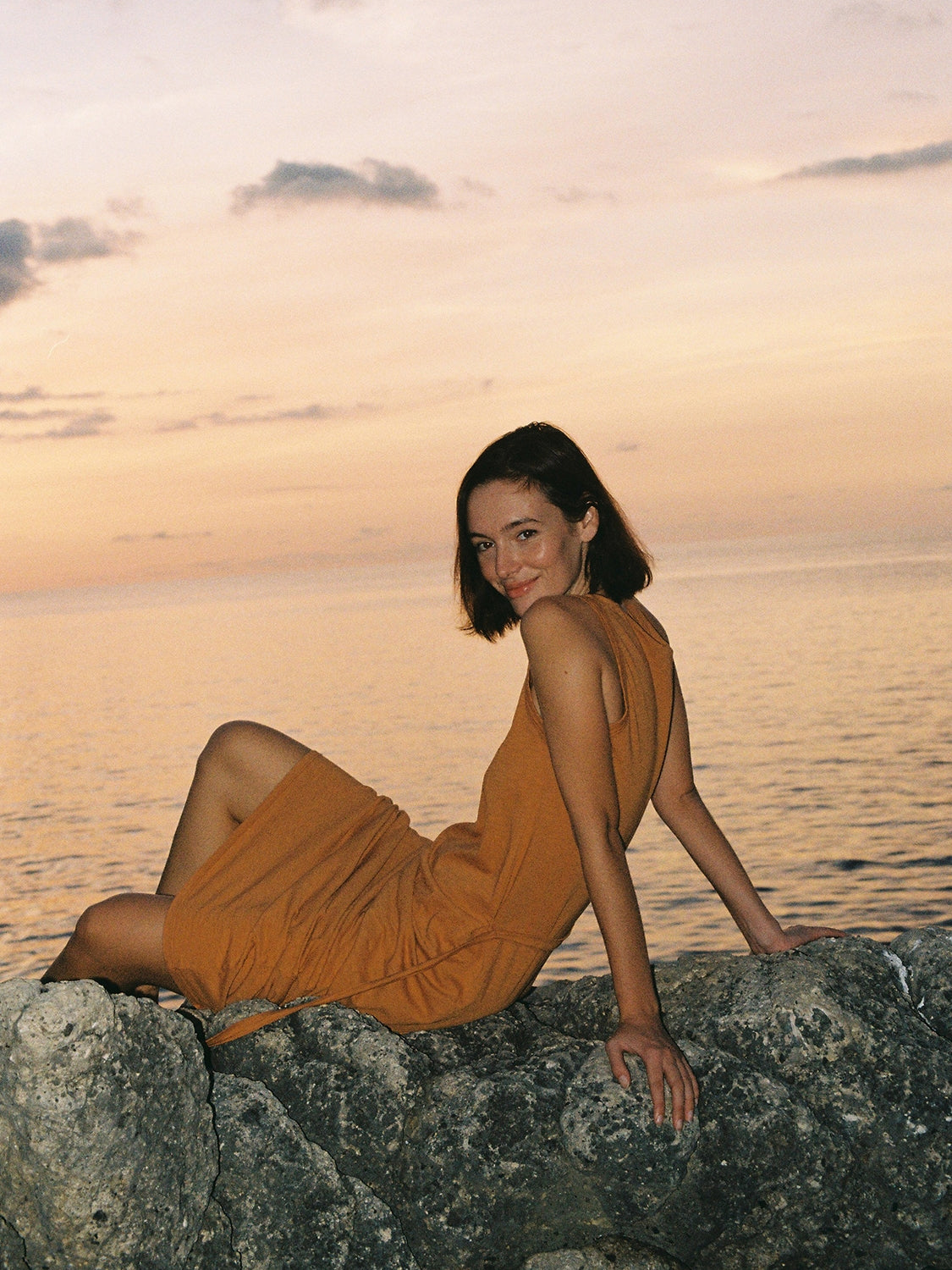 - Cinturón ajustable con trabillas para elegir el modo de posición del vestido