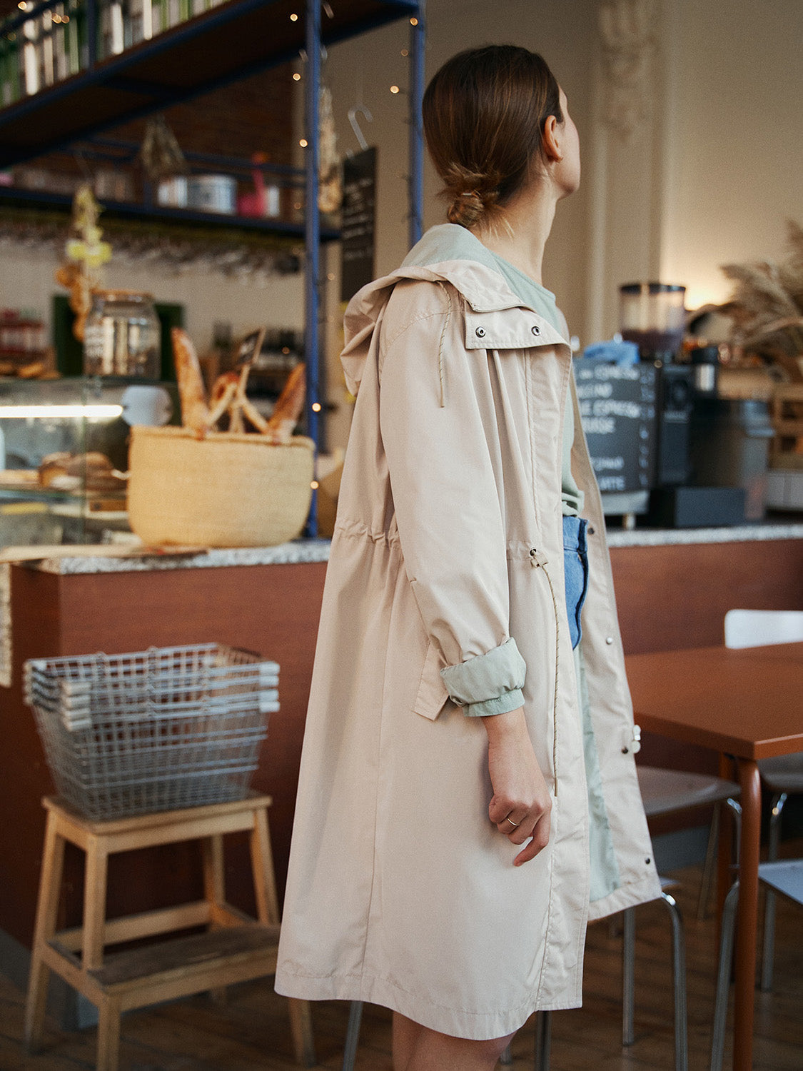 - Capucha con cierre de boton y cuerda ajustable