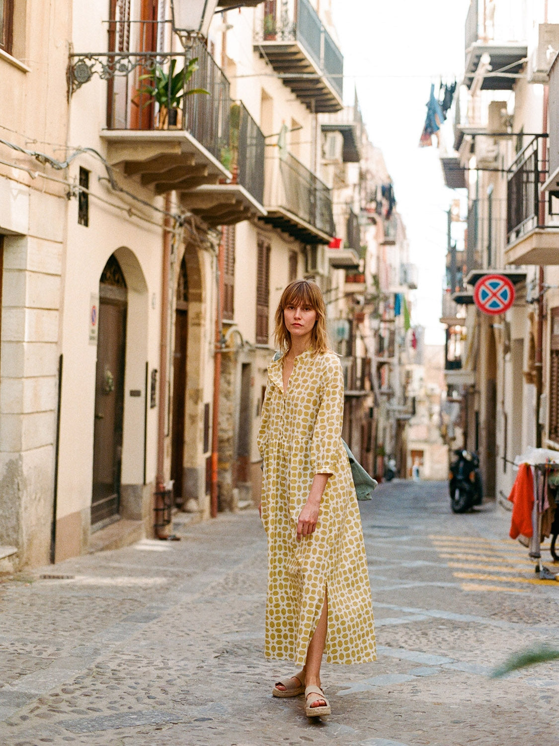 VESTIDO MAXI DE ALGODÓN CON PRINT GEOMETRIC