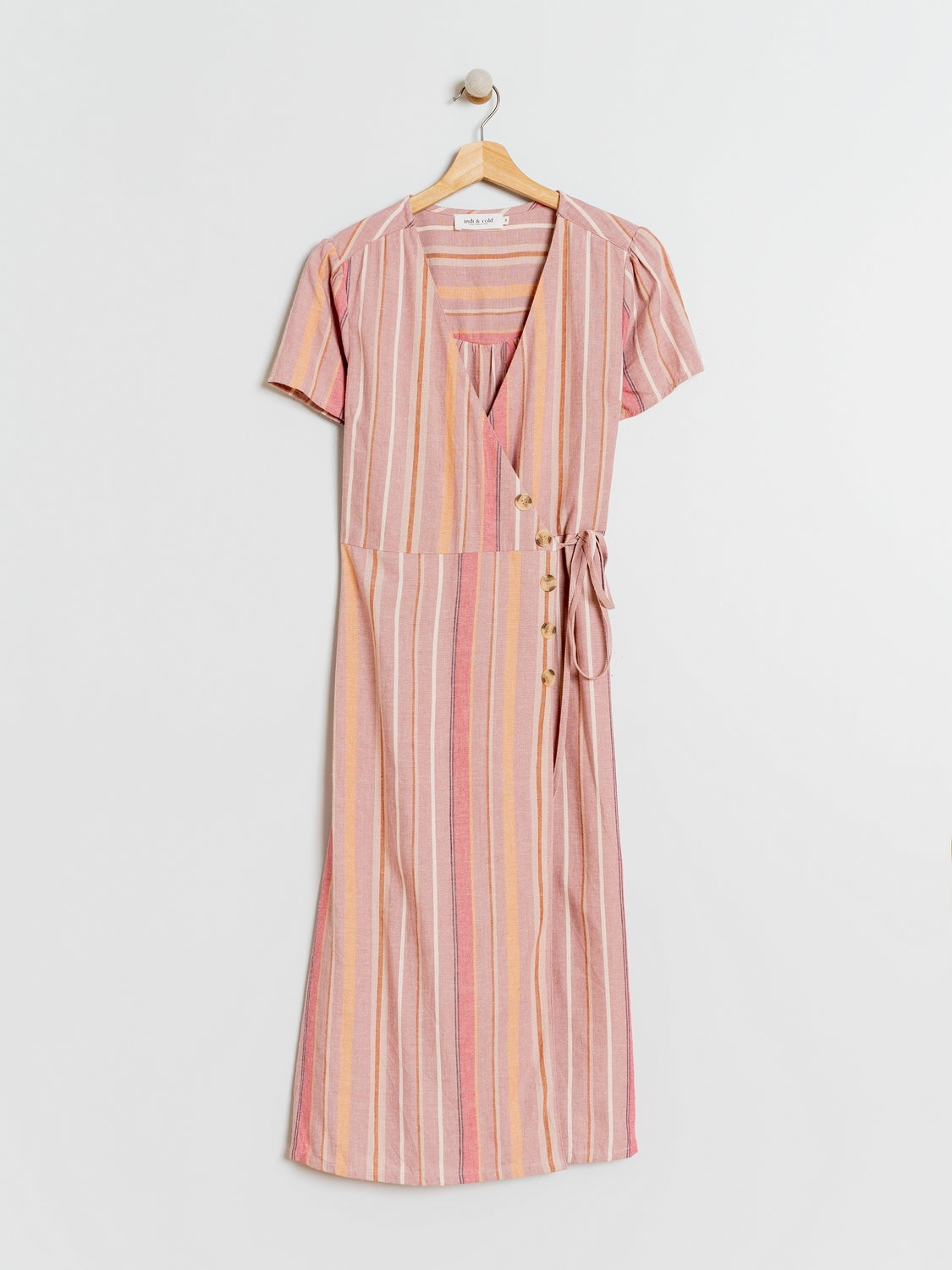 - Vestido cruzado y ajustable mediante cuerdas y botones laterales decorativos