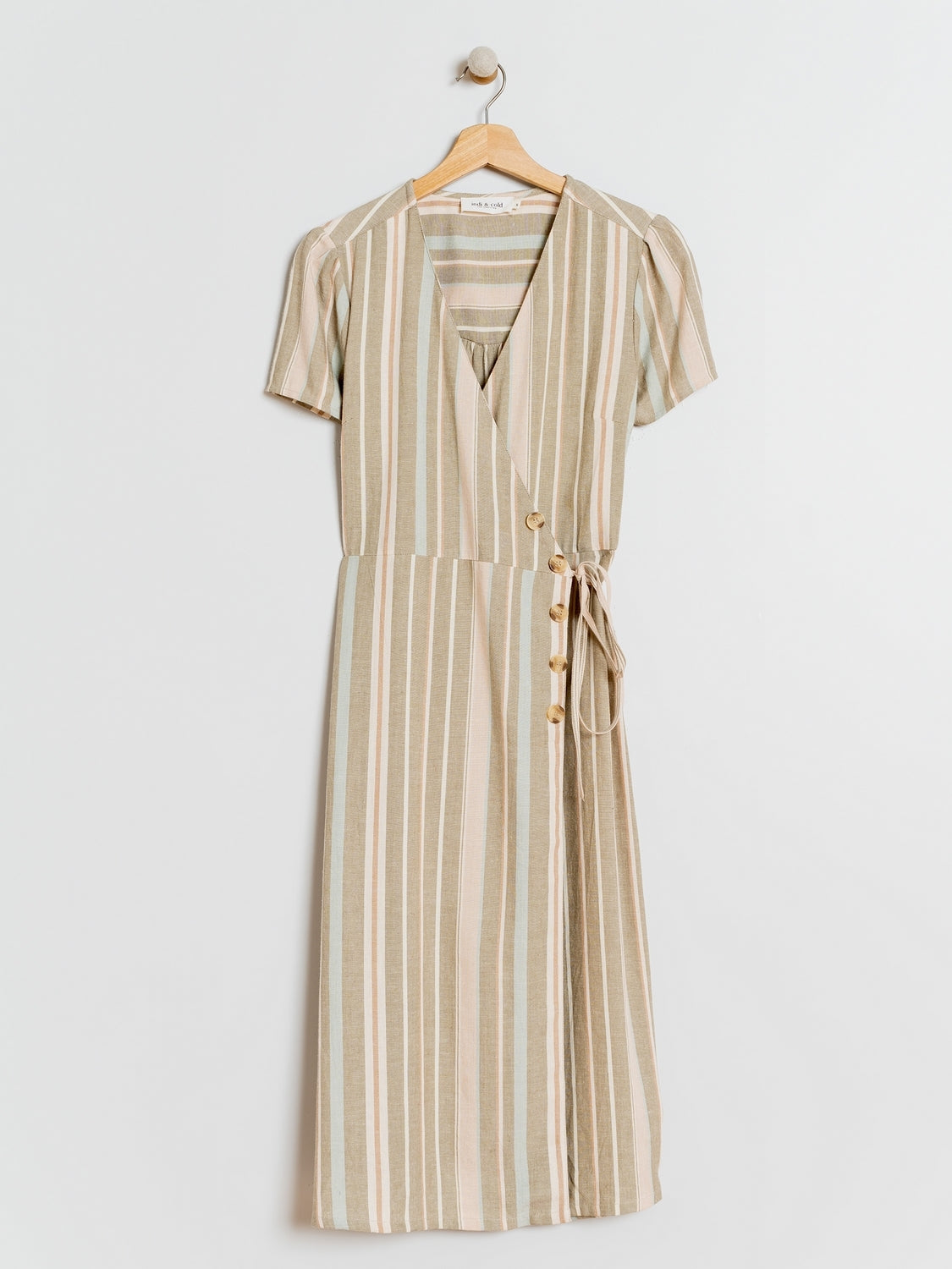 - Vestido cruzado y ajustable mediante cuerdas y botones laterales decorativos