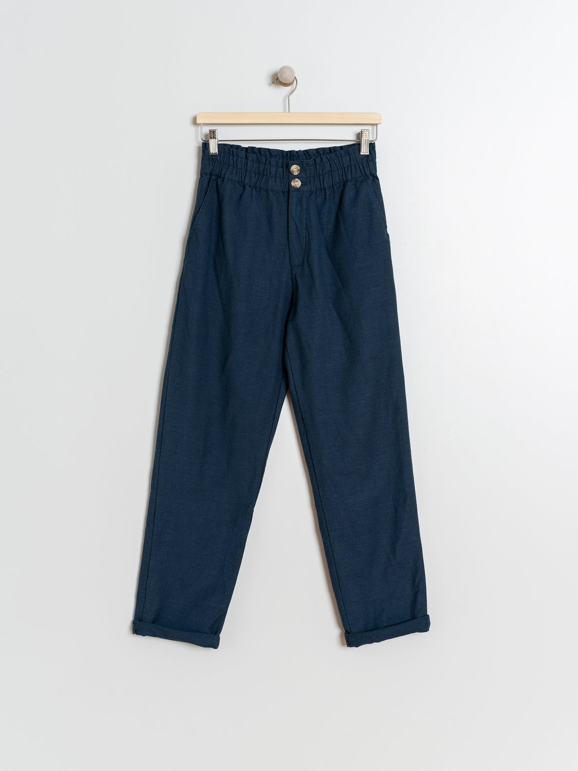 PANTALÓN DE TALLE ALTO EN ALGODÓN EFECTO RÚSTICO