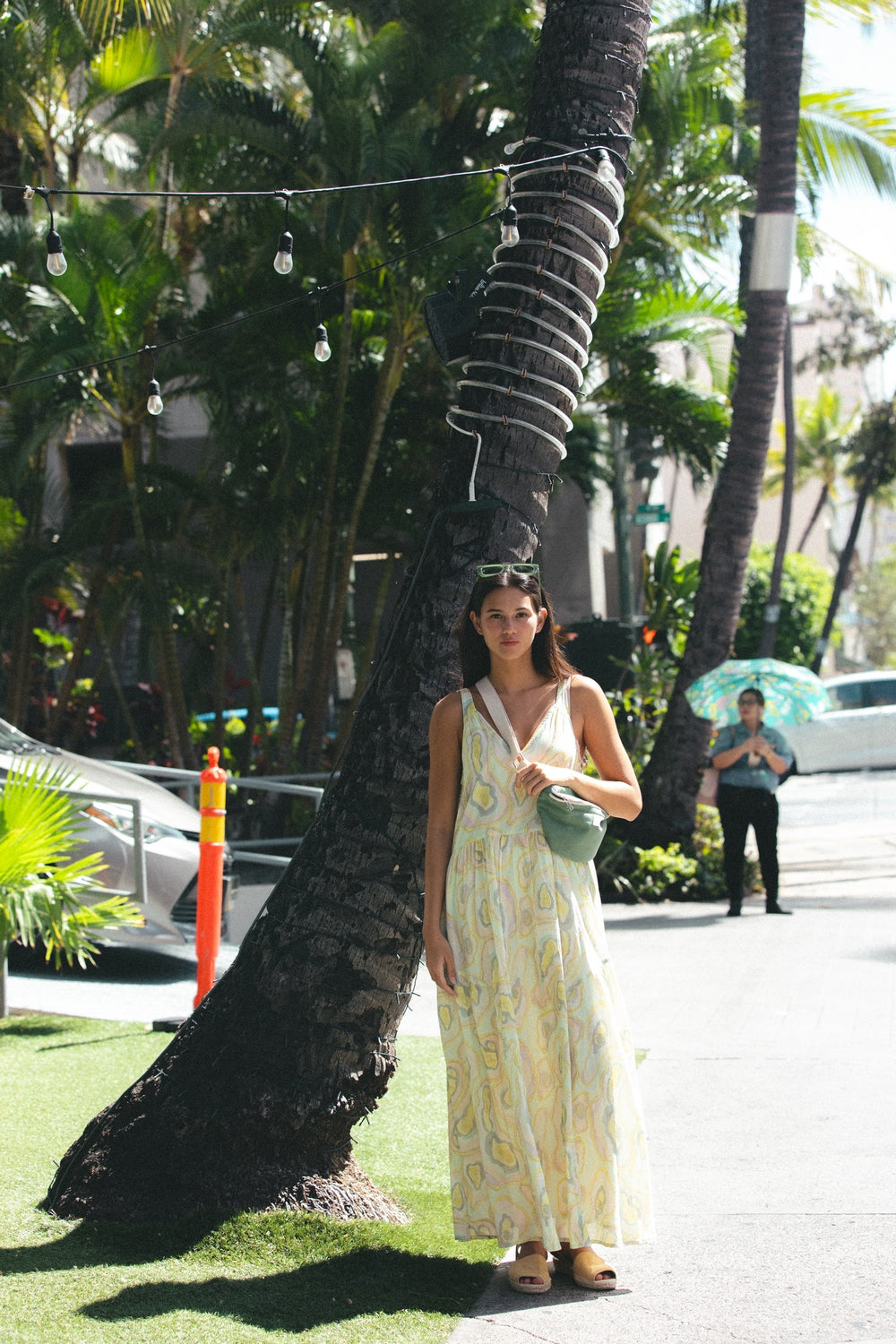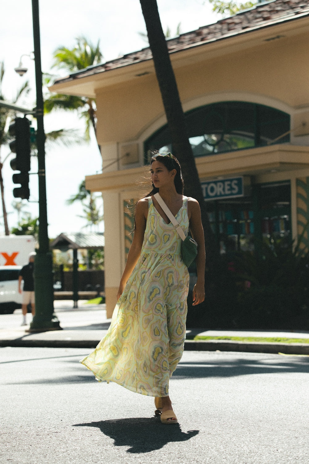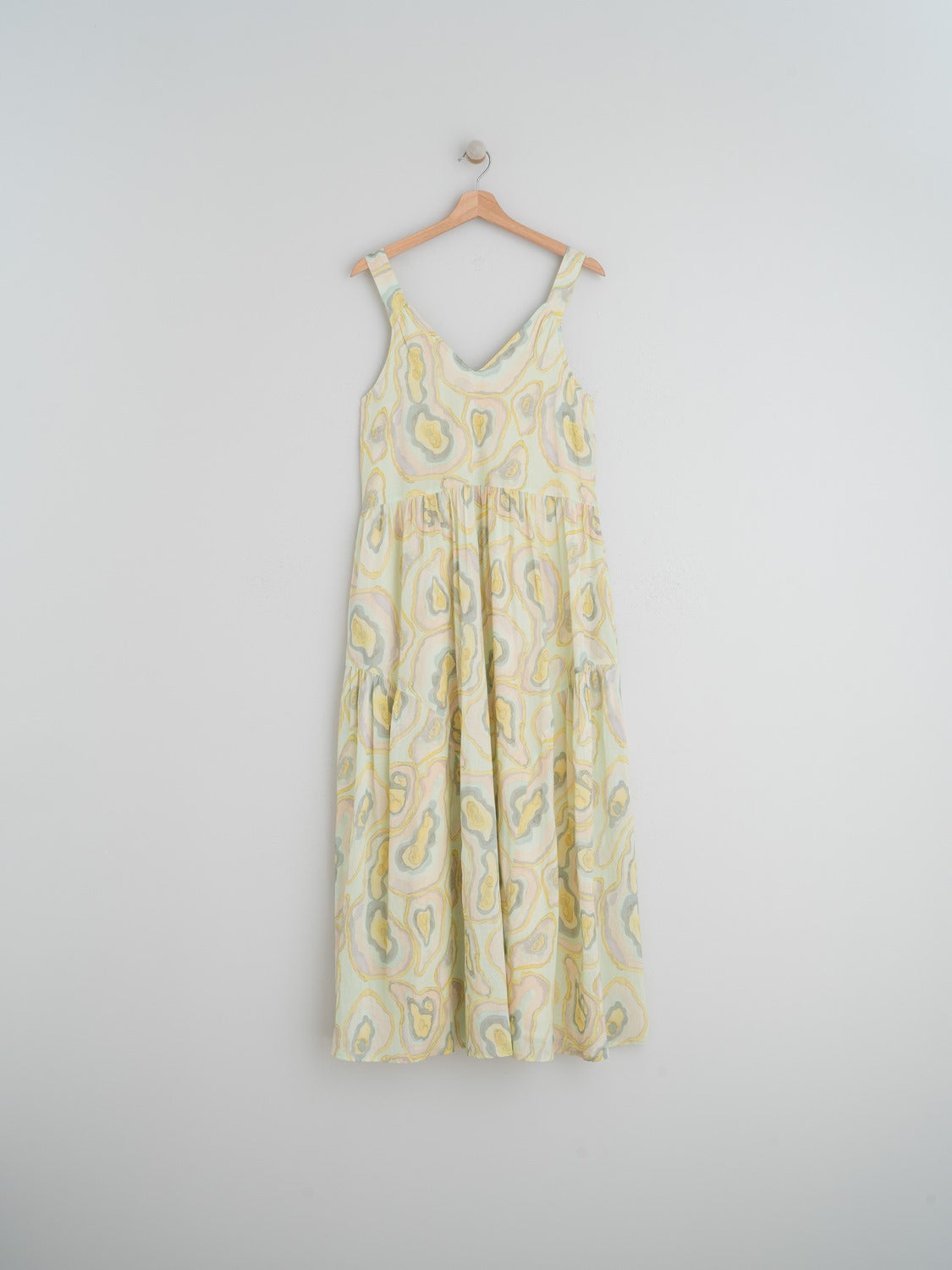 VESTIDO MIDI CAMILE CON PRINT DIGITAL DE GEODAS EN VOILE DE ALGODÓN ORGÁNICO