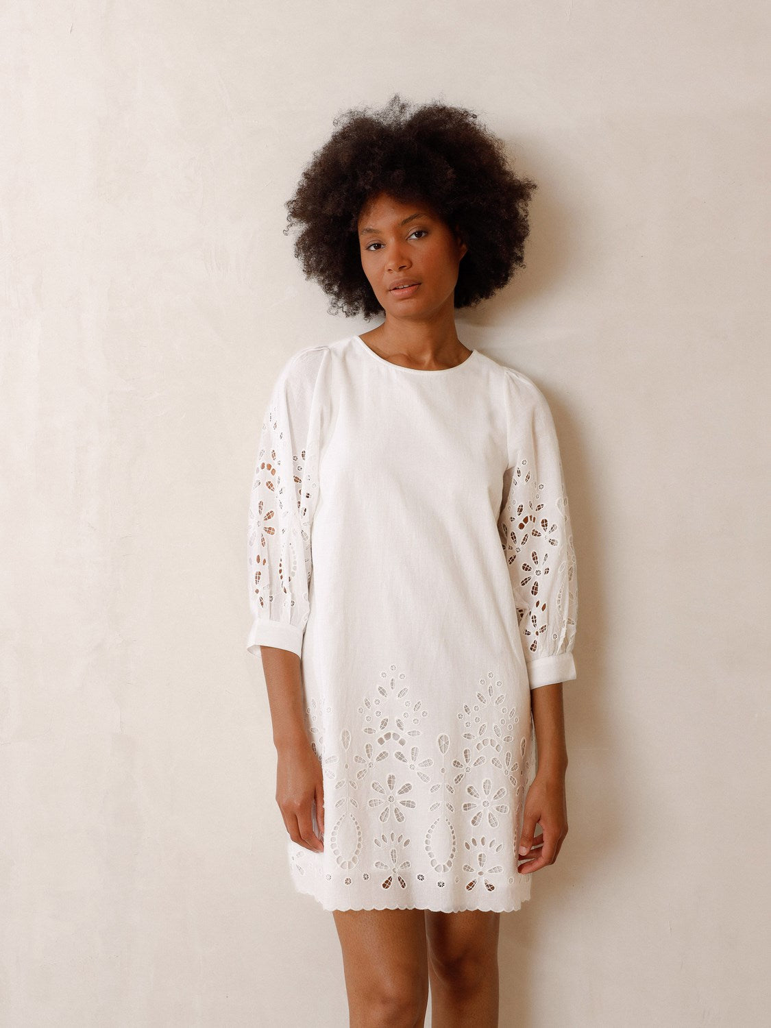VESTIDO CON BORDADOS EN BATISTA DE ALGODÓN ORGÁNICO
