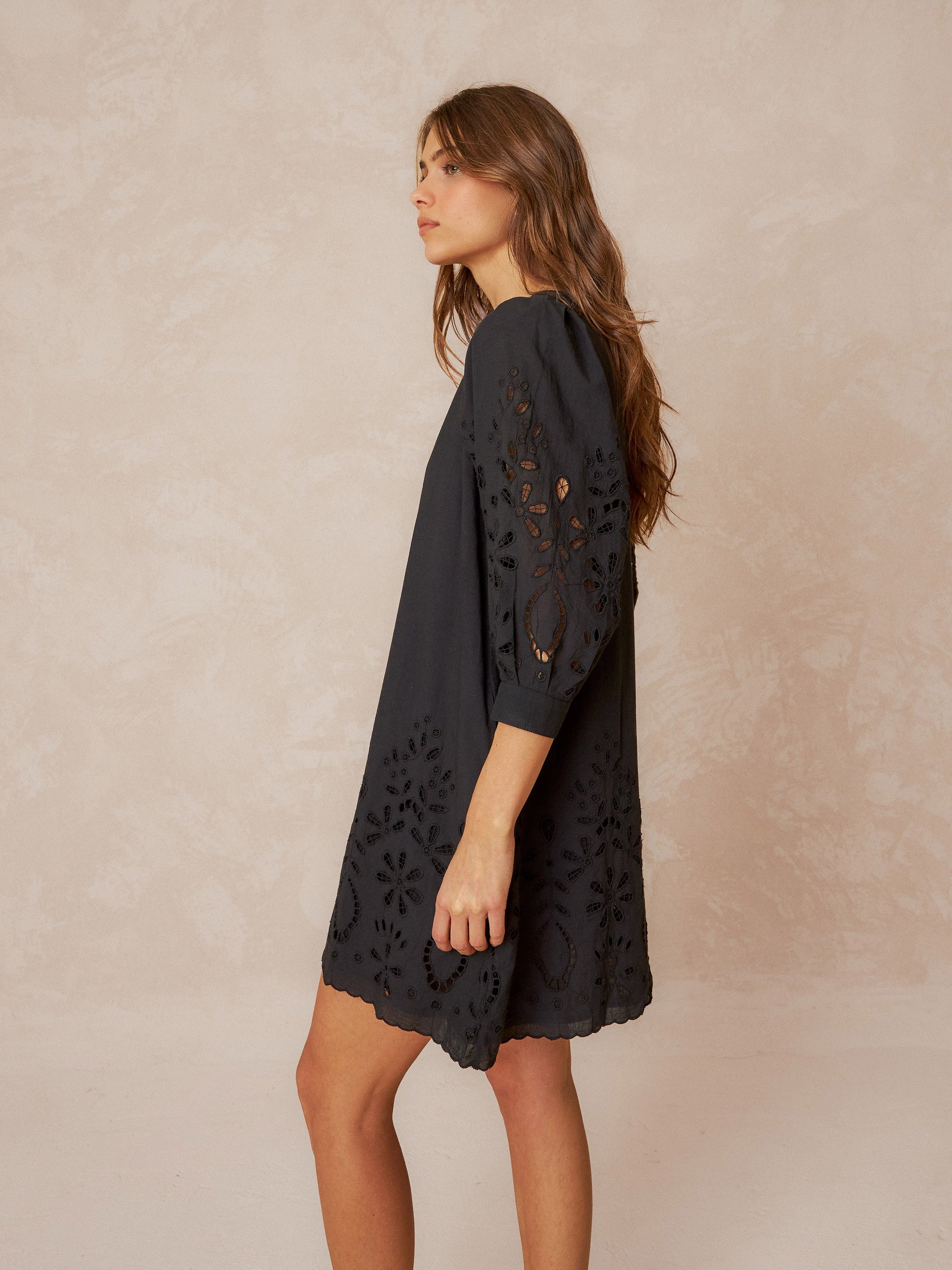 VESTIDO CON BORDADOS EN BATISTA DE ALGODÓN ORGÁNICO